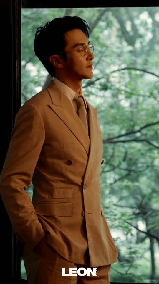 西装革履的他自带高级滤镜,宽肩撑得起所有气场,金丝眼镜增添禁欲感,漫不经心的神态里全是魅力,荷尔蒙爆棚,不愧是颜值天花板。