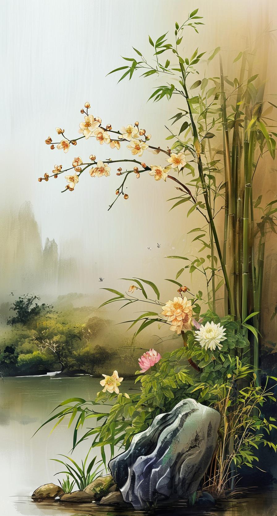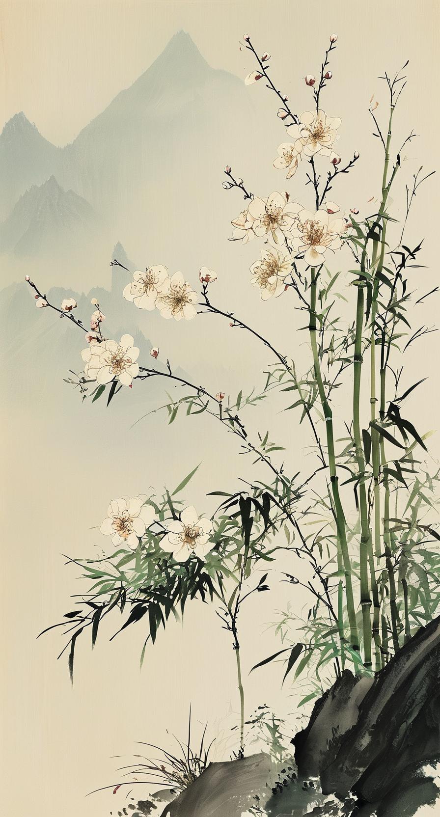 《咏四君子》 【梅】破寒冰第一枝,暗香浮动的霜姿。 【兰】生幽谷清如许,何必世人知姓字。 【竹】影扫阶尘不动,月华穿隙性犹直。 【菊】残犹有傲霜枝,不共西风诉别离。 注:本诗采用七律藏头格,每联首字暗合“梅兰竹菊”。通过“破冰香魄”写梅之先锋气度,“幽谷清芬”写兰的独立精神,“扫阶月影”写竹的谦冲风骨,“残枝傲霜”写菊的孤标节操。尾联“不共西风”以拟人手法收束,将四君子品格提升至超越时空的永恒境界。