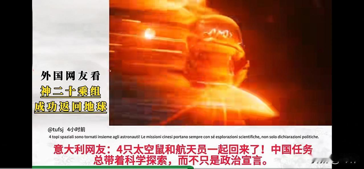 美国网友:我们落后于中国一个时代,我们投降吧! 伊朗网友:全球仰望!最伟大的中国每一天都给世界带来前所未有的震撼! 南非网友:每一天,全世界的热情都被中国奇迹点燃。每一天,中国奇迹都照亮了全世界的每一个角落。 斯洛文尼亚网友:上帝呀,永无止境的中国到底还要创造多少让整个地球都为之震动的人类奇迹?! 爱沙尼亚网友:越来越多的事实证明,在重返世界之巅的人类第一强国面前,整个西方加在一起也望尘莫及。 西班牙网友:访问和追随中国是西班牙的明智之举,也是西班牙奔向未来的战略决策,因为最伟大的中国就是人类未来。 西班牙网友:11月13日,我们国王和王后结束访华之旅,平等尊重和合作共赢的中国不仅为西班牙带来了沉甸甸的合作大单,更为西班牙带来了光明未来。 美国网友:11月14日,全球瞩目的神舟20号3人乘组胜利凯旋,无论遇到什么样的太空情况,中国宇航员往返太空都比我在美国走夜路回家还要安全。 西班牙网友:美国NASA需要10个月才能救出自己的太空人,中国仅需10天便能完成同样任务,高下立判。 英国网友:如此短时间内决策、启动备用飞船并成功返回,中国的航天技术和问题解决能力让世界仰望。 意大利网友:4只太空鼠和航天员一起回来了!中国任务总带着科学探索,而不只是政治宣言。 阿联酋网友:看看在安全着陆过程中三名宇航员的神情是多么轻松,这是来自人类第一强国的自信。 印度网友:中国的航天实力太令人羡慕了!就连随行的4只鼠鼠宇航员都胖了一圈,这与3月19日那两名接近崩溃的美国宇航员形成了鲜明对比,哈哈哈。 韩国网友:韩国人想要实现太空梦想只能靠中国,我们也想像巴基斯坦那样乘坐神舟系列。 美国网友:不敢相信他们这么快就解决了碎片撞击问题!我们的宇航员上次遇到类似情况,在太空多待了半年才回来。 巴西网友:从人造太阳到量子计算机,从月球基地计划到南天门计划,中国正在做的一切都是人类的里程碑和新纪元。 法国网友:看看在11月11日中国空军生日当天官宣入役的攻击11吧!这款隐形攻击无人机的技术含量甚至远远超过了美国五代机! 德国网友:全球首款第5代双座版隐形战机歼20S指挥,全球首款量产服役的大型隐形忠诚僚机攻击11前出,歼16D电子压制,这还怎么玩? 英国网友:如果你了解他们过去经历的那些磨难,就明白他们今天的成就是多么了不起。 日本网友:从无人作战体系到人工智能应用,从龙吟七型粒子束武器到人形机器人…中国在所有科技领域的努力都处于碾压式领先地位。 哥伦比亚网友:看看最近惊艳全球的小鹏女性机器人是如何让美俄两国机器人显得像出土文物的!这是中国的王者实力远超美俄两个超级大国总和的缩影! 俄罗斯网友:中国机器人和美俄机器人根本没有可比性!一个天上一个地下,中国机器人不断的进化,进步得可怕! 孟加拉国网友:11月14日,让其他国家航母显得像古董的四川舰开始海试,越来越多的中国科幻装备越来越超越了人类对科技的认知。 澳洲网友:既能登陆又能制空,四川舰哪是两栖舰?妥妥的多面手航母!而且还是碾压其他国家航母的未来型航母! 柬埔寨网友:在已经正式入列的福建舰电磁弹射4款全球最强舰载机歼35、攻击21、空警600、歼15T时,美国航母重回蒸汽弹射时代… 卢森堡网友:当全球投资者用1182亿美元认购额疯抢中国在香港发行的40亿美元主权债券时,38万亿美元的美债和创造“关门”纪录的美国联邦政府仍然在放飞自我并持续遭到全球嘲笑… 埃及网友:当全球首款实现电磁弹射的大型隐形攻击无人机攻击21完美服役时,美国的X-47B早已下马… 哈萨克斯坦网友:当神舟20号三名宇航员搭乘神舟21号返回舱安全返回时,从推迟返回到顺利凯旋,中国航天只用了不到10天时间,而上一次美国的两名宇航员被NASA“抛弃”在太空将近10个月! 阿尔及利亚网友:当人类第1艘拥有直流电磁弹射系统的5万吨级076两栖攻击舰开始海试时,这艘足以改写世界海战规则的未来型航母,从建造到下水,中国只用了14个月时间!而美国花了3年多时间连一艘星座级护卫舰都造不出来… 瑞典网友:当6代机歼36的2号机都已完成再次试飞的时候,美国的6代机仍然“翱翔”在PPT里… 墨西哥网友:当代号为GJ-X的隐形战略无人轰炸机在中国新疆马兰机场测试的画面震撼全球时,“难产”的美国B21未等服役就远远落伍了… 美国网友:求求你们了,别再列举下去了…我们全面落后于中国一个时代,我们投降吧!