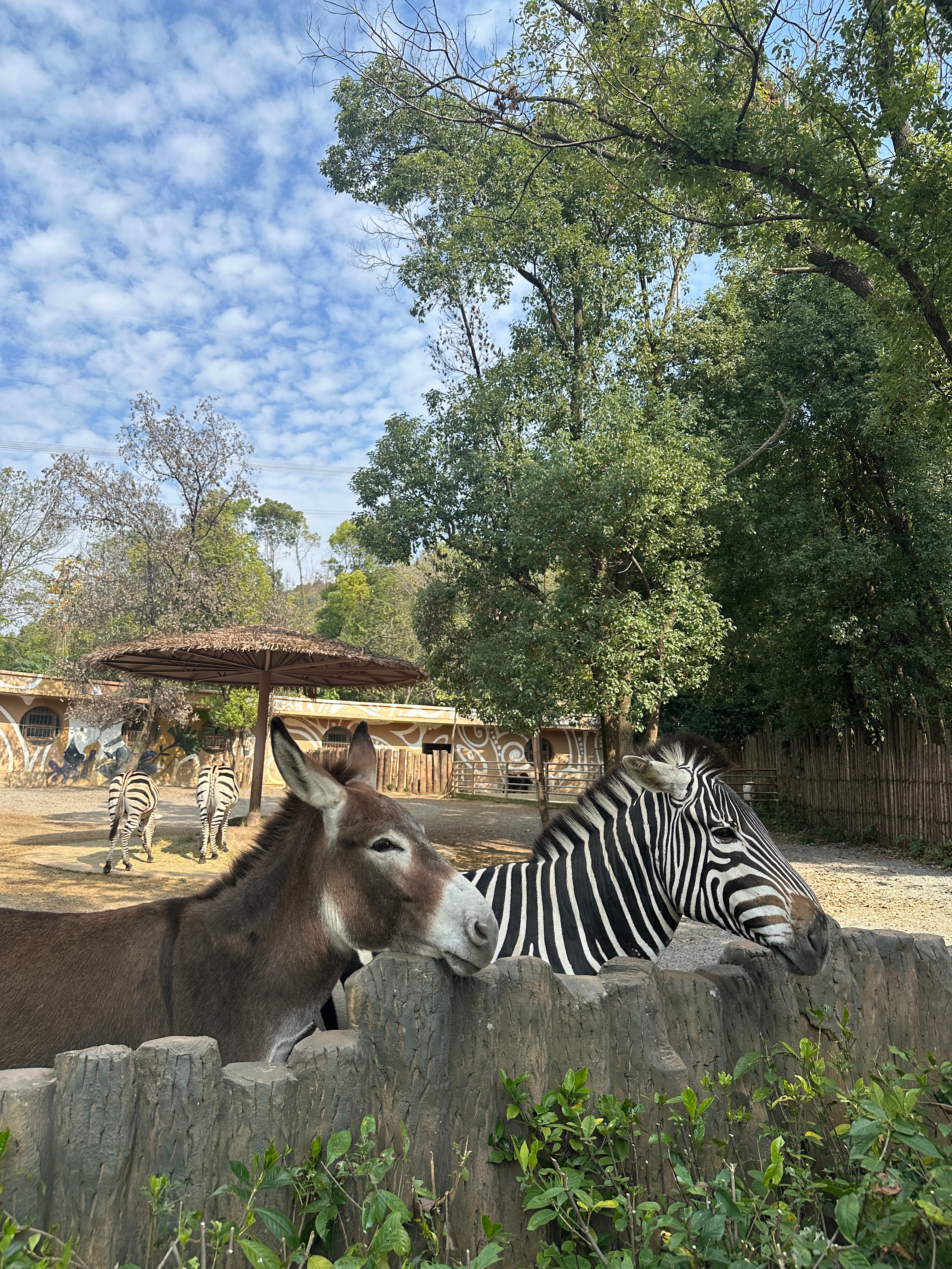 🦓🫏斑马和驴住一起这个驴没吃到胡萝卜还会werwerwer的乱叫啊啊啊啊