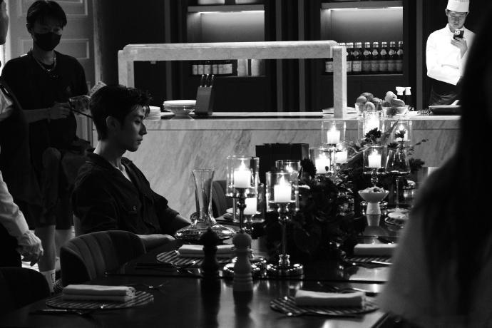 鹤男的金鸡奖造型真的让人眼前一亮,裸色长裙和大海、轮渡的适配度绝了,氛围感直接拉