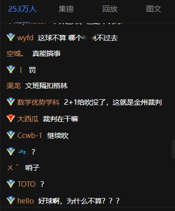狗屎裁判!文班隔扣追梦(5犯)2+1被吹,随后25秒3哨找补马刺。 末节追梦篮下强硬挤撞文班,结果反被后者篮下强起隔扣反杀。气氛一下到位、2人立马对喷起来,差点打架哈哈(图1-2)。 可奇葩的是裁判吹了这球无效......为啥?追梦5犯了啊! 5佳球被吹,观众能满意,弹幕狂喷哈哈(图3) 裁判也知道理亏,可随后追梦还是领到5犯、巴特勒篮板犯规、界外犯规文班(图4-6),短短25秒吹了勇士3个!!!