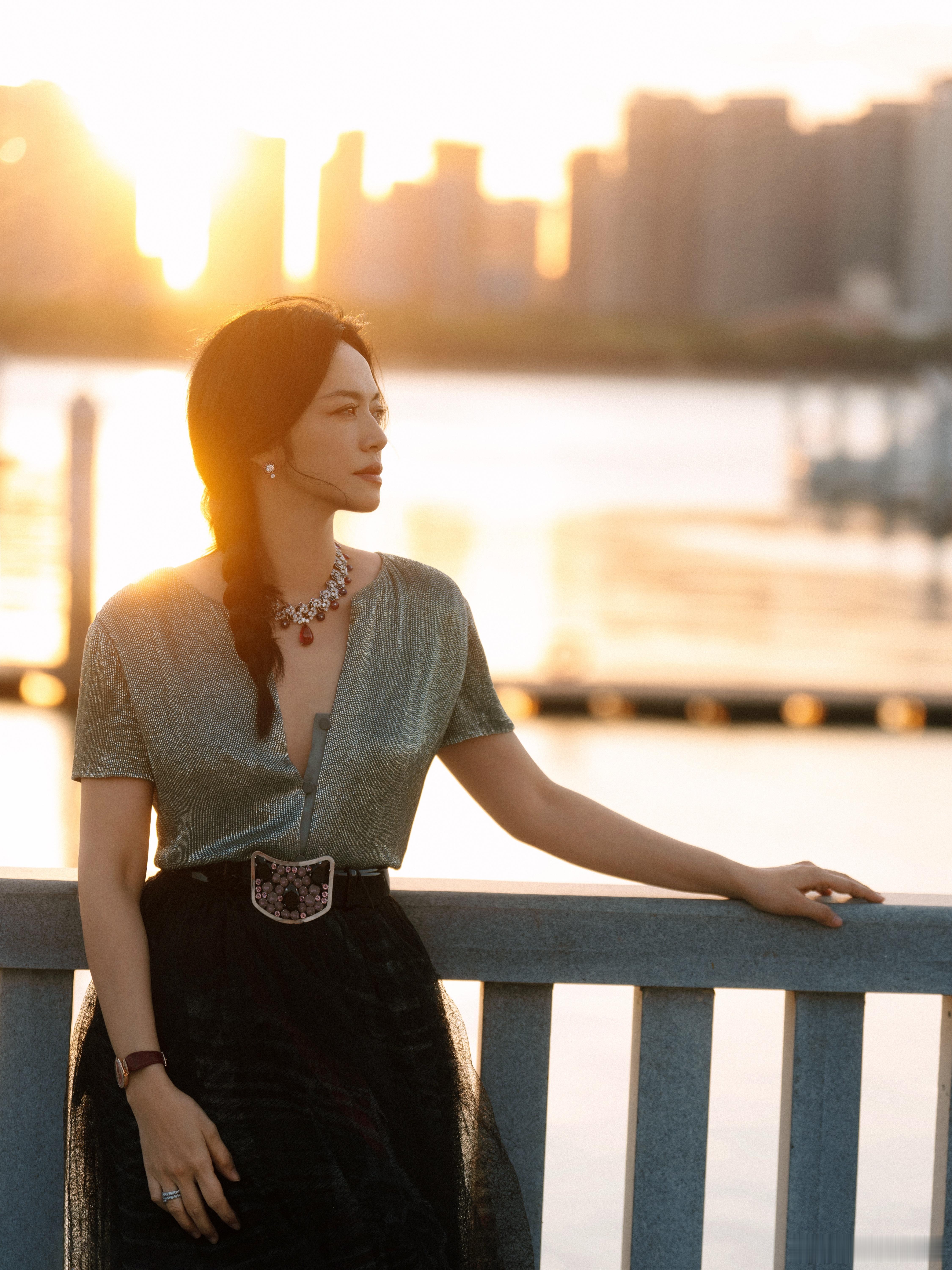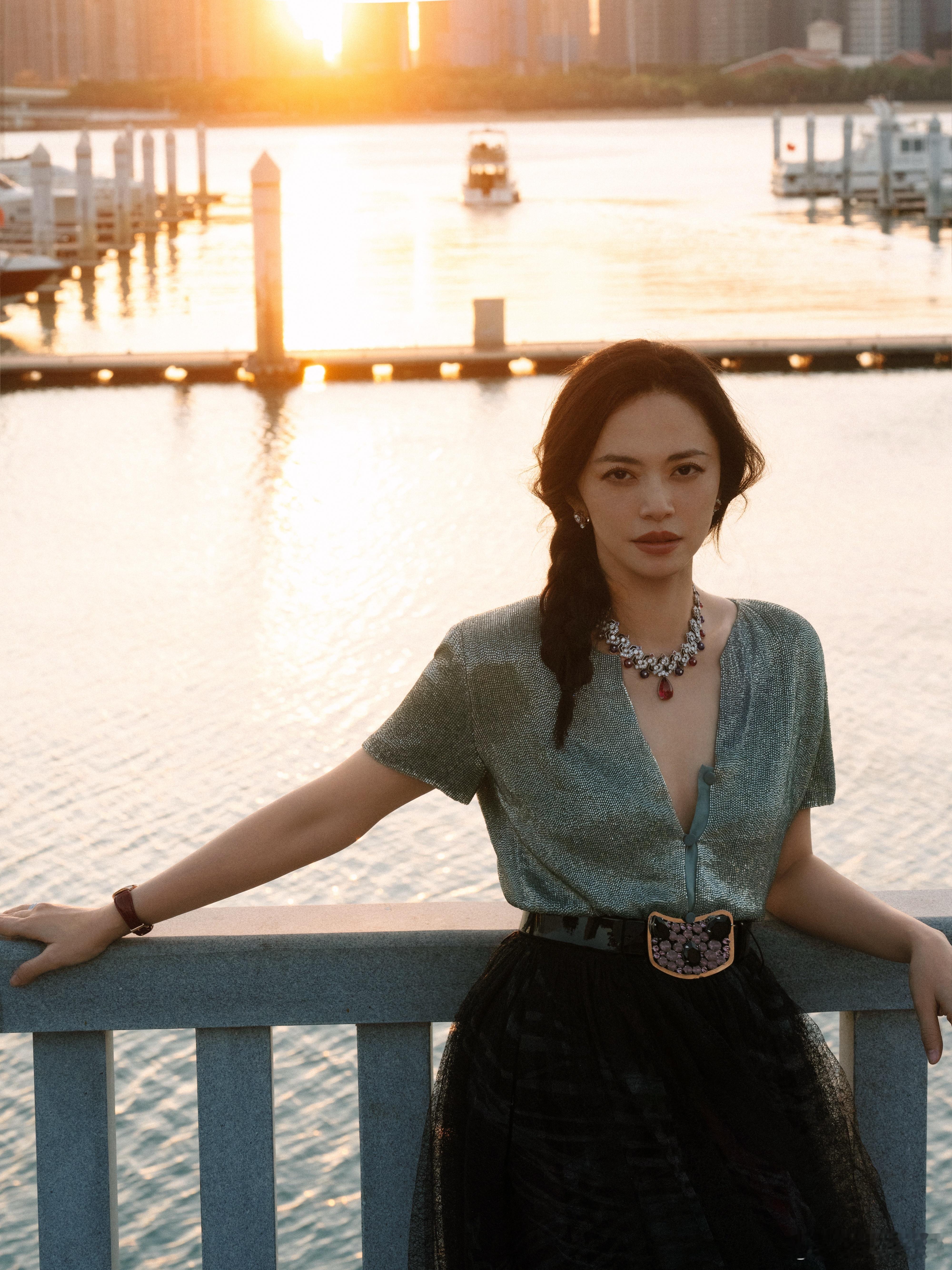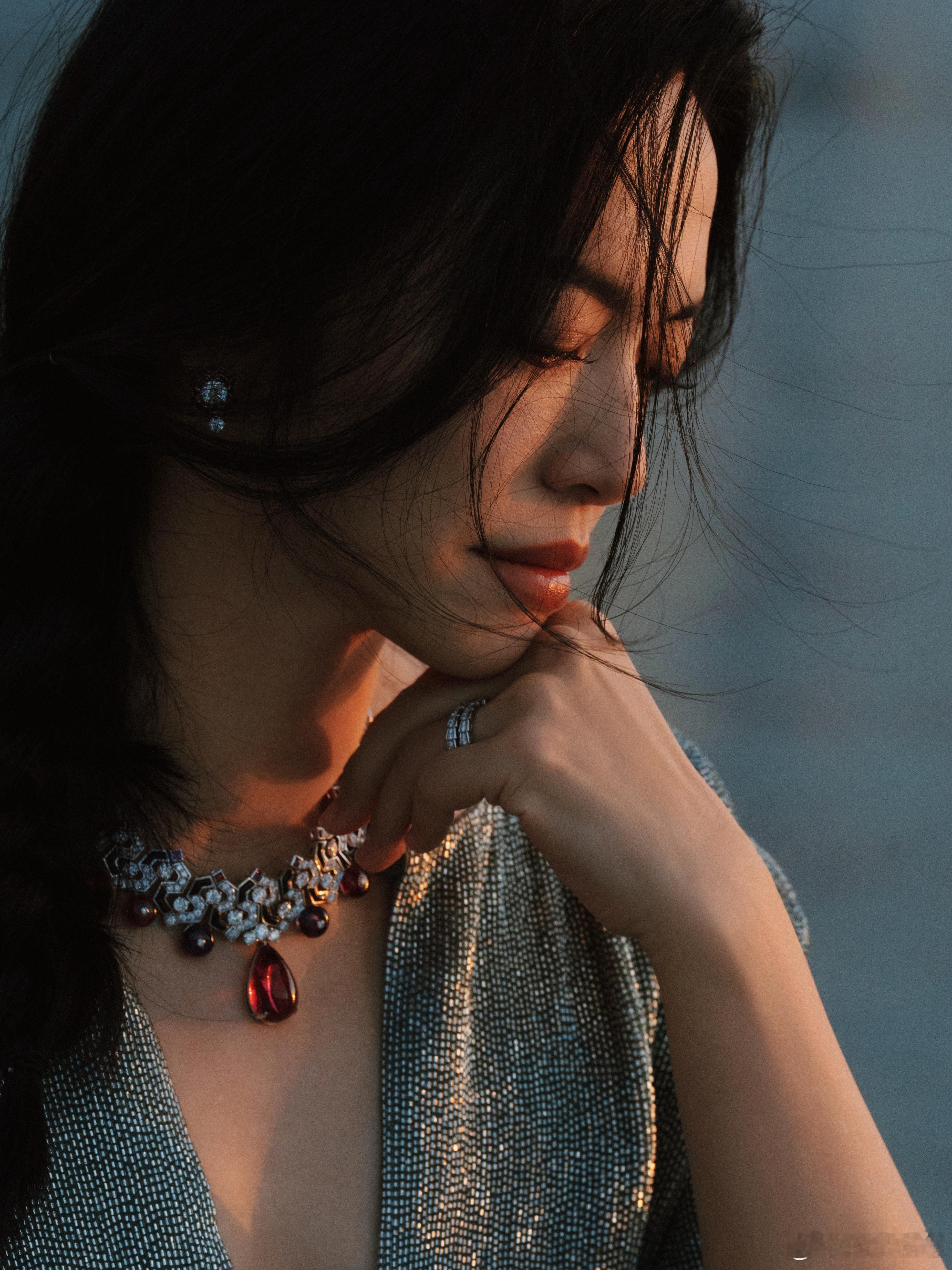 顶级高定穿在姚晨身上,是星光与风骨的碰撞。深V领剪裁利落,珠绣面料暗藏光泽,搭配复古编发与宝石首饰,优雅中透着不容小觑的强大气场。