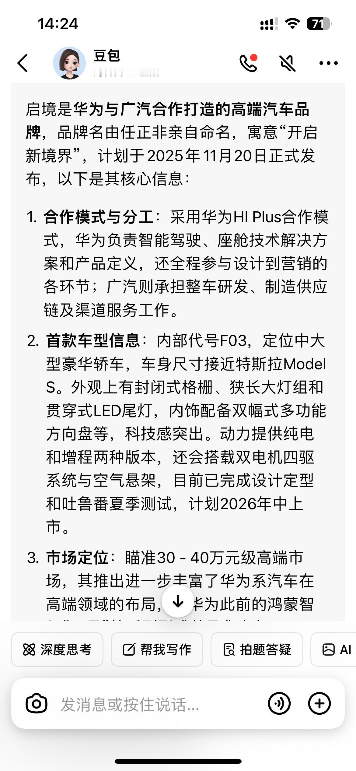 比亚迪的高端之路危险了,华为系启境实锤了,定位高端车[机智] 华为与广汽还是官宣合作了,国内传统车企纷纷失去灵魂,就剩下比亚迪、吉利和长城了。 比亚迪的中低端做的非常好,已经是国内头部车企,但高端路线并不顺利。 前几年新势力依靠冰箱彩电大沙发抢了不少高端车市场,这一两年华为系凭借智驾异军突起,给比亚迪造成了很大的压力。 2026年,比亚迪或许该放大招了[加油] 但我认为,未来两三年,华为系内部会有车企反水,或者是搞小动作,原因必然是利益分配[呲牙][呲牙][呲牙]