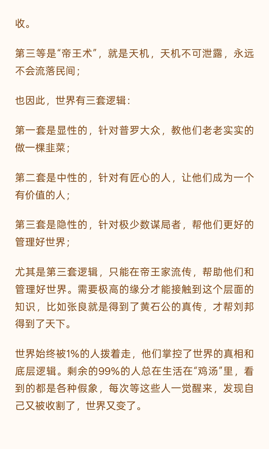 帝王术是极少数人掌握的控制技巧,通过利用小人、打击对手、控制资源等方式,确保权力稳固。 这种策略分为三个等级,分别针对大众、有匠心的人和谋局者,揭示了世界被1%的人操控的真相。
