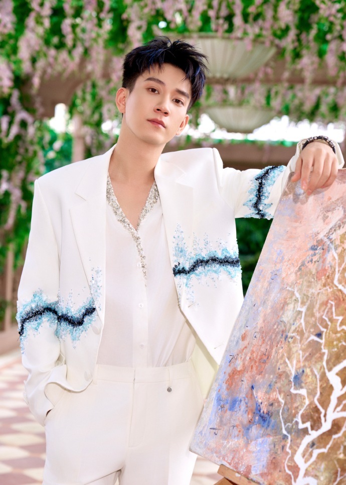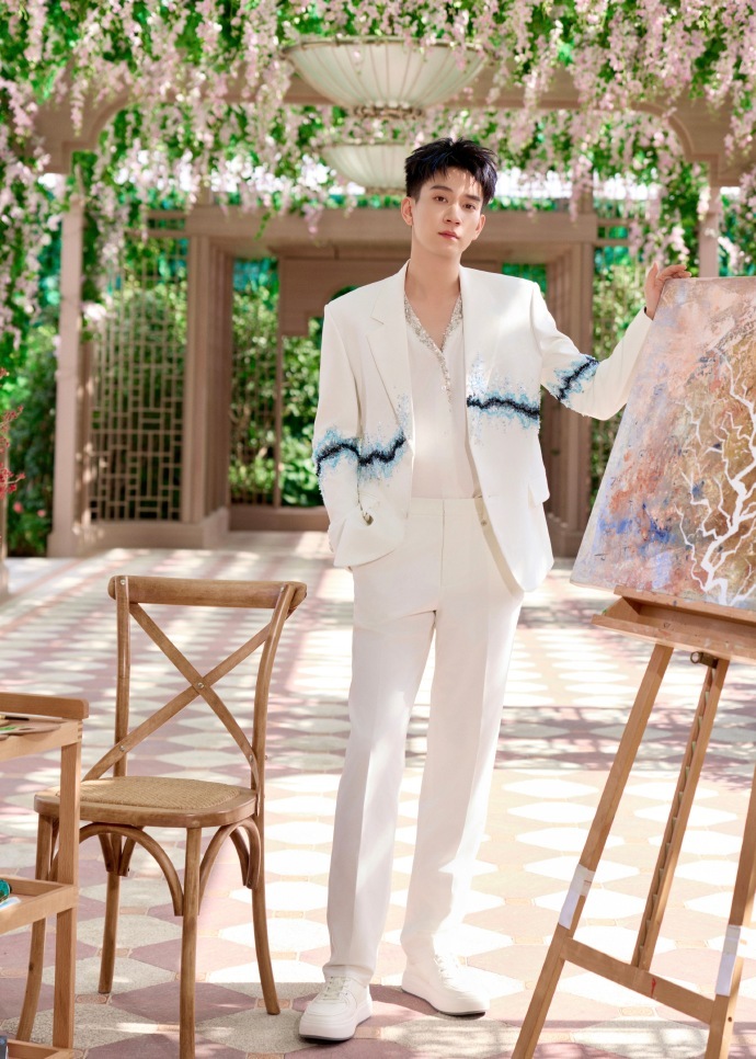 王子奇 看得出他是王子!一身白西装也太适配了!挑染蓝造型和腰间的银河蓝相呼应,干净又贵气,少年感和绅士范儿直接拉满,妥妥的白马王子本人,这气质真的没得挑,看一眼就移不开眼!