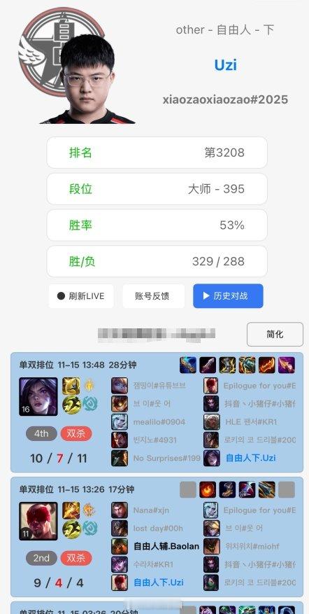 什么职业作息?真想复出挣奶粉钱?Uzi昨天排位到凌晨四点 下午快两点又开始排位根据排位统计小程序显示Uzi昨天排位到凌晨四点,今天下午一点多又开始继续排位!小程序都显示Uzi是自由人,相信哪个版本合适了,Uzi会回来的吧?