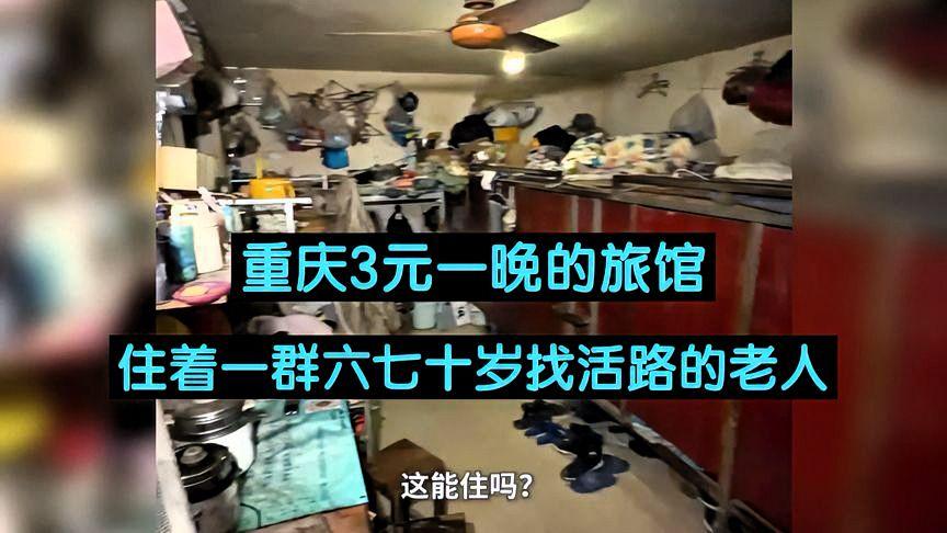 重庆3元一晚的旅馆,挤着一群还在找活路的六七十岁老人。 逼仄的空间堆着锅碗与旧物,吊扇转着岁月的褶皱——这不是“能不能住”,是生活压出的方寸容身地。
