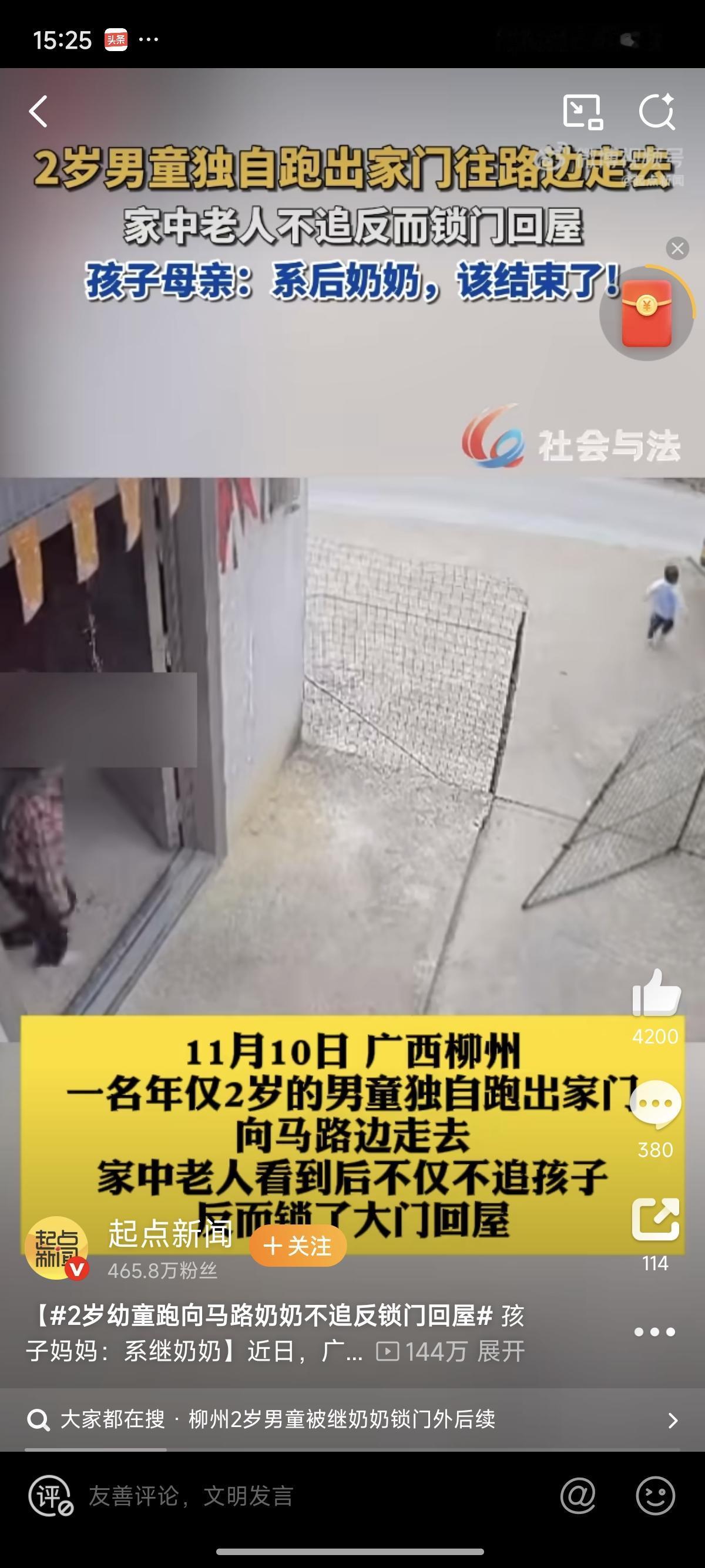 2岁娃冲马路,奶奶不追反锁门!妈妈回应扎心了 广西柳州一段监控刷爆全网:2岁