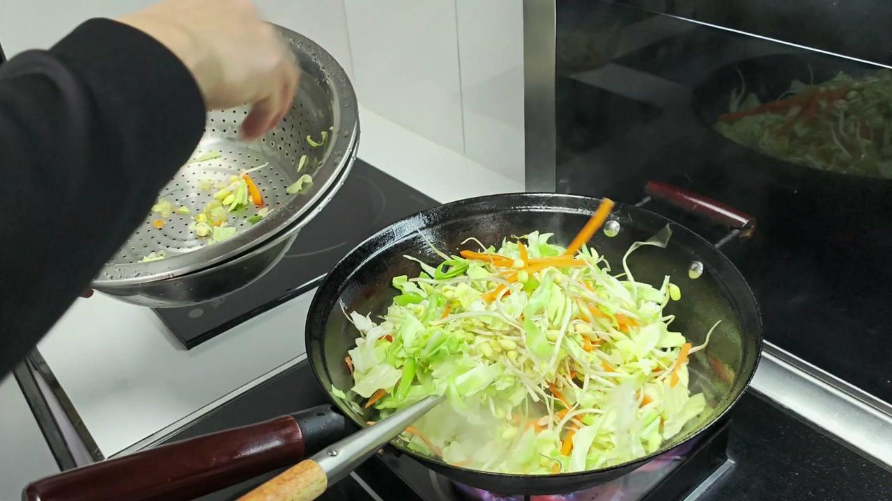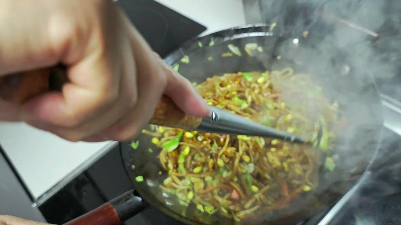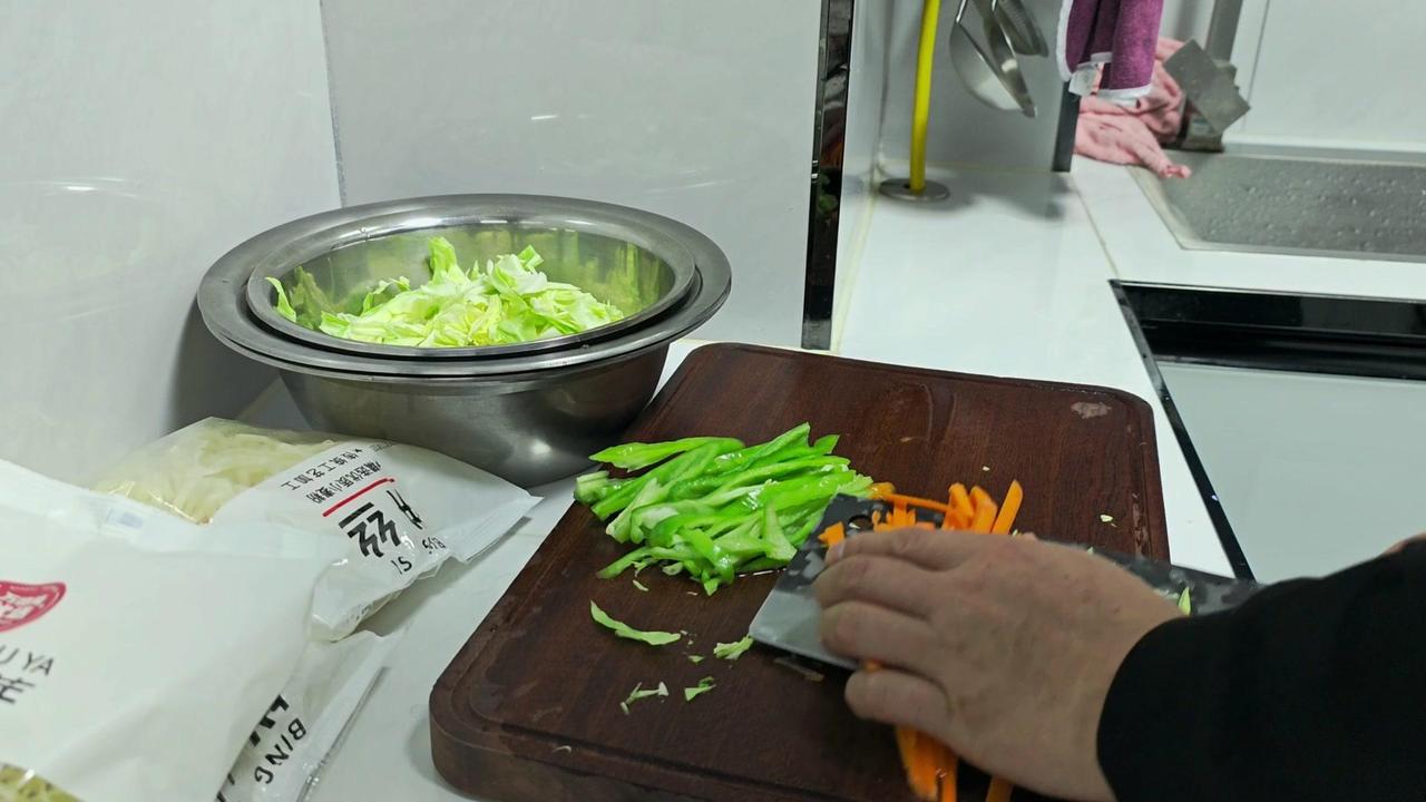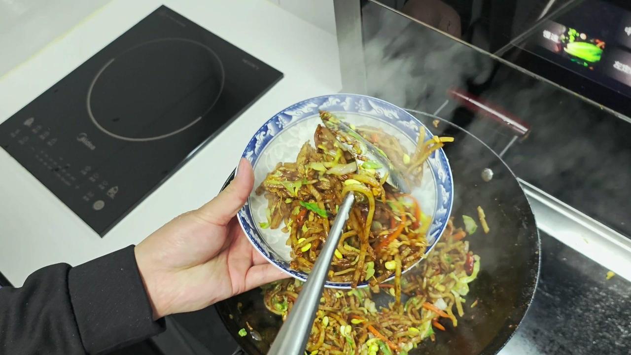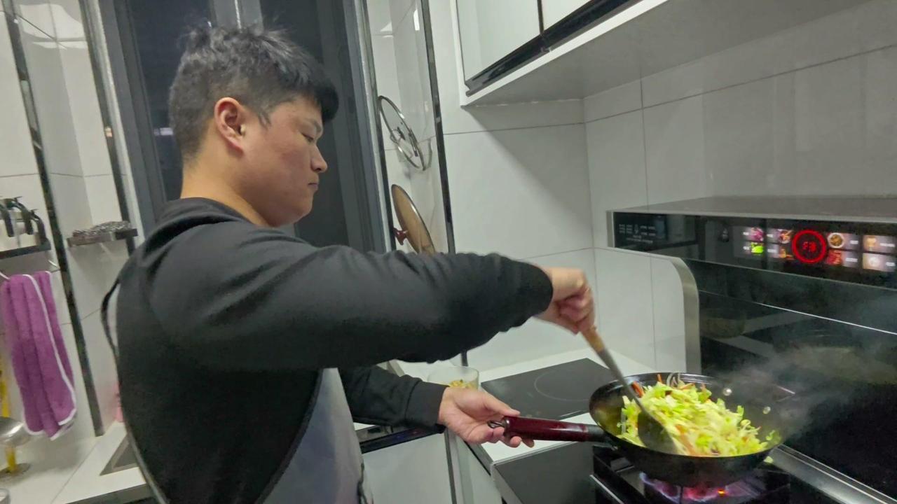 下班后去超市采购新鲜食材,炒饼丝+腊肉的搭配最对胃口。腊肉肥瘦相间,22一斤买了些,冷水下锅焯水去腥味,煮好后切片备用。包菜切丝,大葱和干辣椒切段,蒜切末,鸡蛋打散煎成蛋块盛出。 炒饼丝前先起锅烧油,爆香豆豉和葱姜蒜干辣椒,加蚝油、生抽调味,放入包菜丝翻炒至微软,再把熟饼丝倒进去,大火快速翻炒均匀。接着加入腊肉片,一起翻炒让香味融合,最后撒上胡椒粉和味精提味,一盘热气腾腾的炒饼丝就做好了。 一家人围坐在一起吃晚饭,腊肉的咸香和饼丝的筋道完美结合,包菜的清爽解腻,鸡蛋增加口感,光盘行动就是最好的证明~