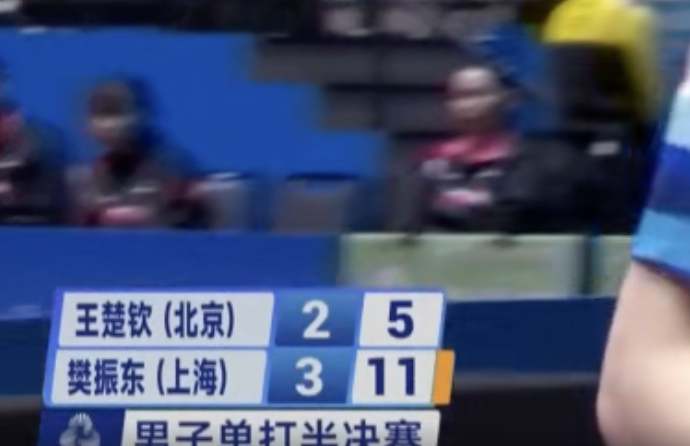 全运会男单半决赛第五局,樊振东11-5王楚钦,大比分3-2夺赛点!