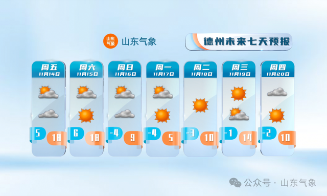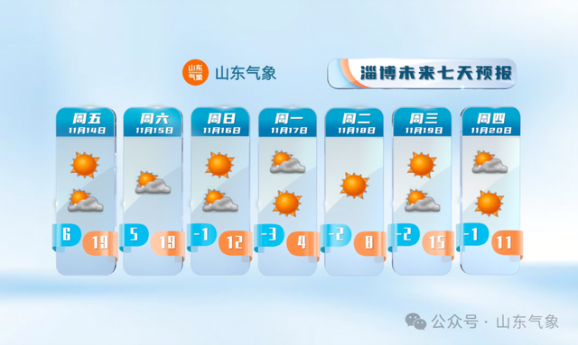 最低气温:鲁西北和鲁中山区-1℃左右,沿海地区5℃左右,其他地区2℃左右。