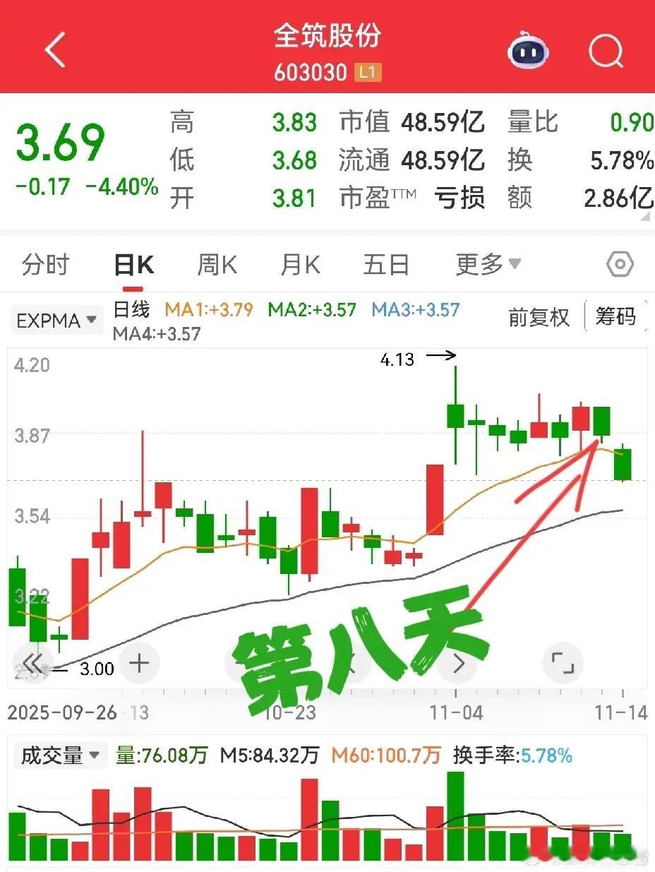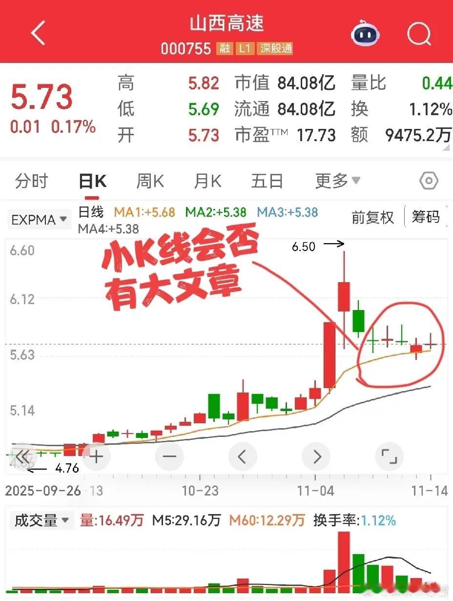 全筑股份:涨停后的“空中加油”形态,还记得我之前提过的“五八节点”战法吗?简单说,这类形态的关键就在第五天、第八天——这两个时间点没动静,就得果断撤离观望!这股刚好踩中规律:第五天没能强势突破,第八天更是直接萎靡走弱,此刻正是了断的最佳时机。要是第八天没及时离场,现在回调阶段就得紧盯第二道生命线!回顾前期走势,它多次在这条线止跌回弹,能不能再次有效支撑,直接决定后续走向~再看山西高速:一直觉得高速股里难出大牛,但这股的走势形态确实亮眼,所以之前特意贴图分享。目前它在生命线附近企稳整理,小十字星这类小K线反复出现,量能也持续萎缩。这种走势太磨人了:拿着吧,不知道啥时候能启动;卖了吧,又怕错过突然拉升,妥妥的“食之无味、弃之可惜”的鸡肋品种,真让人纠结!