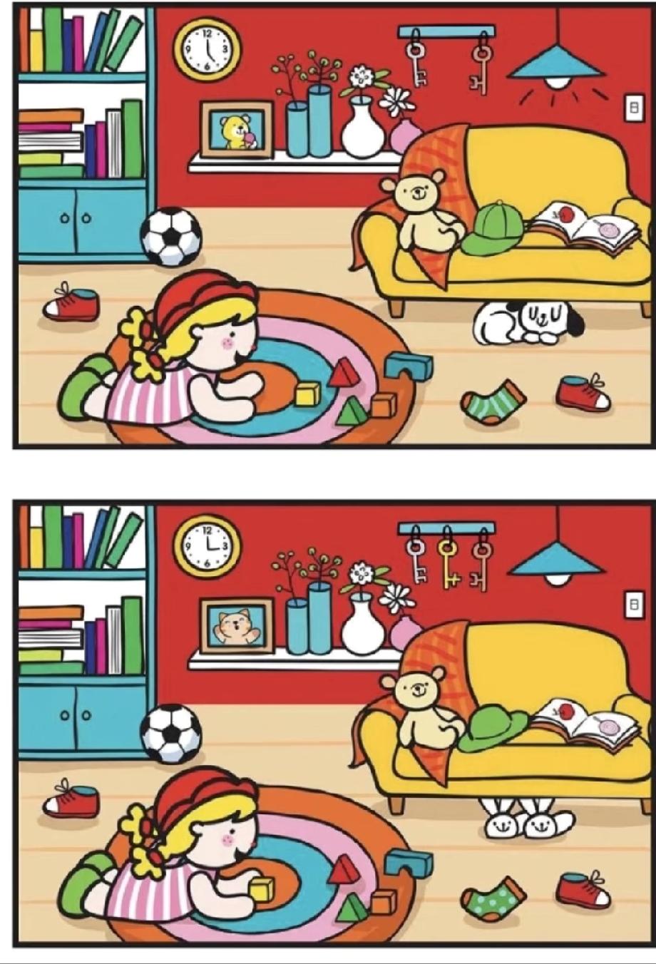 这图的不同处藏得太刁了!我看了3分钟只看出1处,有人是火眼金睛吗?