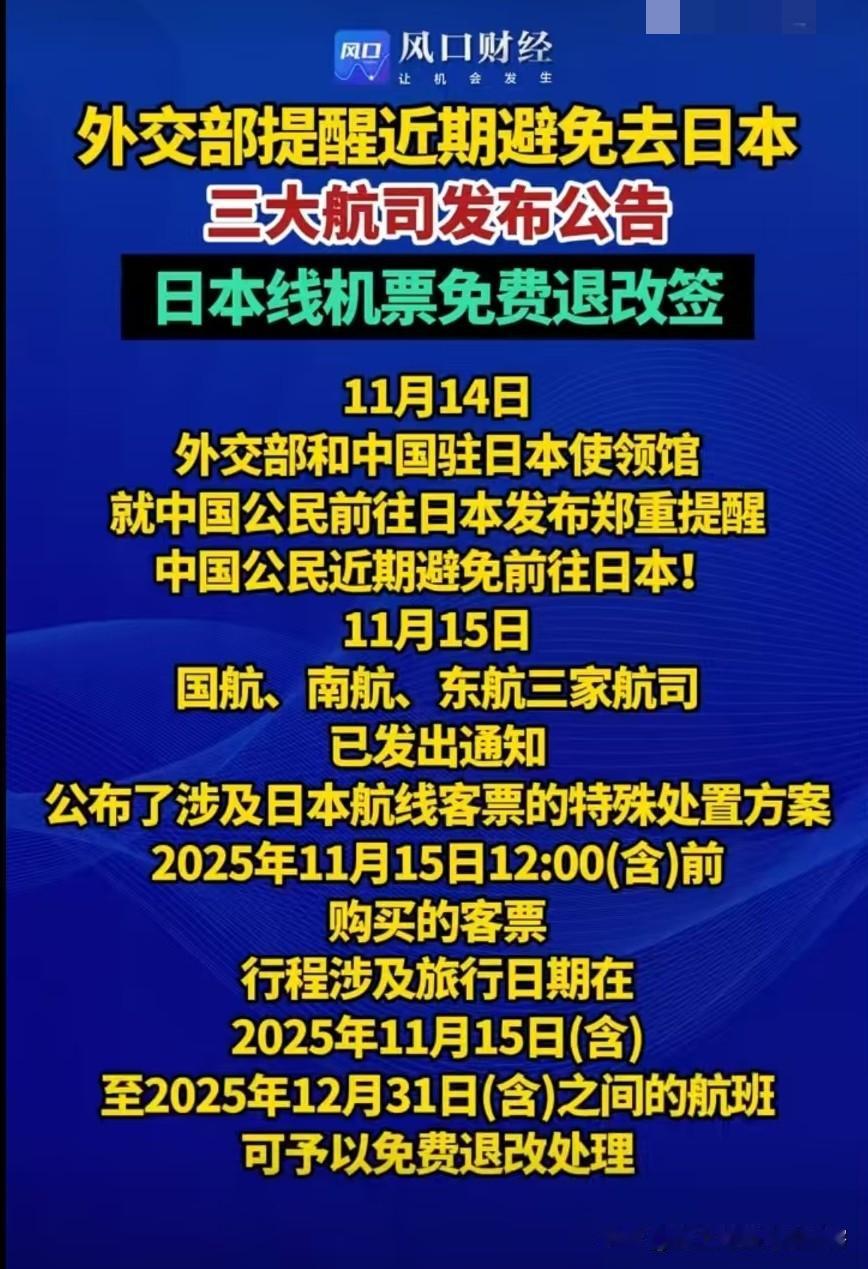 日本机票免费退改! 冤冤相报何时了,直接灭掉没烦恼 坚决支持三大航司对飞往日本的退改票决定 感觉有强大的祖国妈妈在我会一直有底气 ,说实话都说到这份上了还有人要去的话那我只能说:尊重他人命运吧!而且🇯🇵那么小一个地方不知道有什么好玩的! 大家怎么看?欢迎评论区留言讨论!