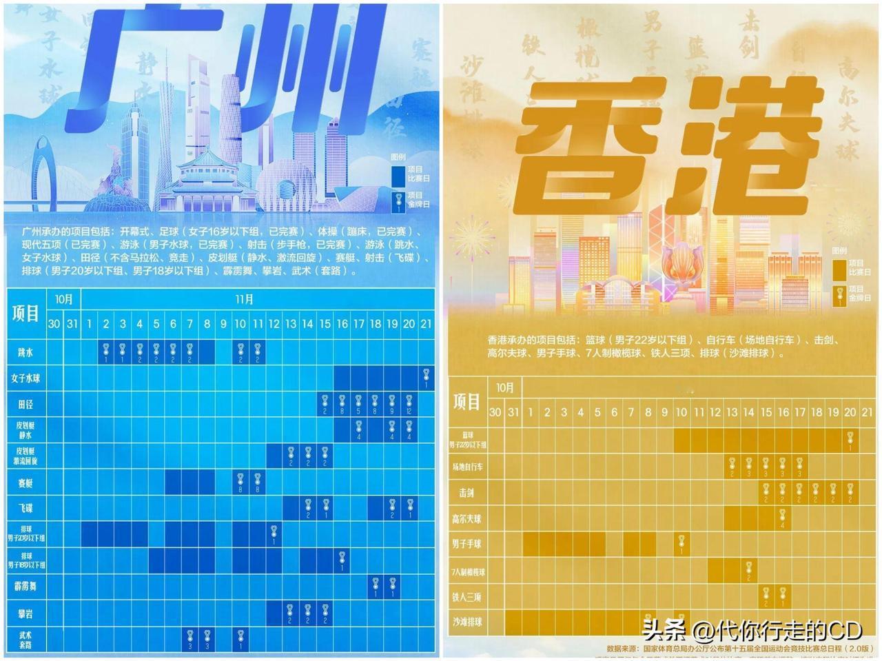 喜欢的比赛为啥还没转播? 别傻傻等了~全运会有78枚金牌在开幕式前就颁出去了! 第15届全运会将在419个小项中产生金牌,其中有78项比赛因为赛事疏导、赛程冲突、天气因素等影响而选择在开幕式之前进行。本届全运会竞技比赛的首枚金牌早在6月10日就已诞生~上海U16女足1:0战胜广东U16女足夺得冠军。 早早诞生的金牌分布在15个分项的78个小项中,分别为: ①11.7-11.9,珠海 公路自行车🥇4 ②11.2-11.8,广州 跳水(部分)🥇10 ③11.7-11.8,广州 武术套路(部分)🥇6 ④10.31-11.8,香港 沙滩排球(女子)🥇1 ⑤11.5-11.6,深圳 马拉松游泳🥇2 ⑥10.19-10.30,汕尾 帆船帆板🥇10 ⑦10.22-10.27,广州 手球(男子)🥇1 ⑧10.24-10.25,深圳 自由式小轮车🥇2 ⑨10.12-10.18,广州 射击(步手枪)🥇16 ⑩10.10-10.12,广州 蹦床🥇4 ⑪9.26-9.29,惠州 跆拳道🥇8 ⑫9.26-9.27,广州 现代五项🥇4 ⑬9.10-9.19,汕头 手球(女子)🥇1 ⑭9.5-9.10,肇庆 青年组体操🥇5 ⑮深圳/梅州/肇庆/广州 足球🥇4