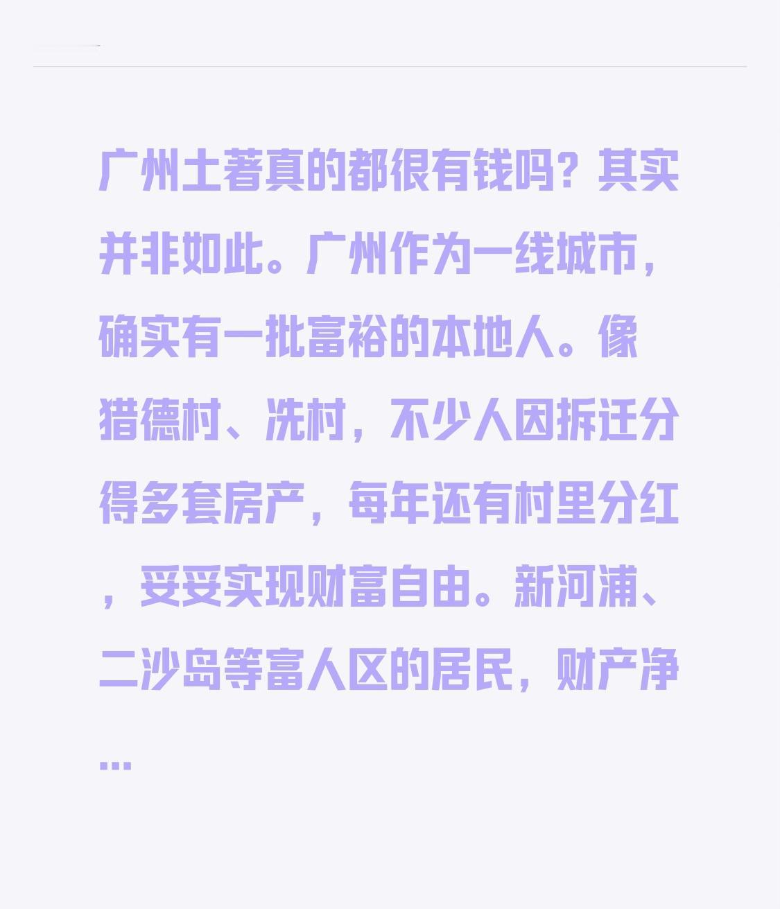 广州土著真的都很有钱吗?其实并非如此。广州作为一线城市,确实有一批富裕的本地人。像猎德村、冼村,不少人因拆迁分得多套房产,每年还有村里分红,妥妥实现财富自由。新河浦、二沙岛等富人区的居民,财产净值也很高。 但广州也有生活困难的本地人。城中村和偏远地区,部分居民因没抓住发展机遇等因素,生活水平不高。而且广州房价高,生活压力大,大家消费也务实,觉得“钱够用就行”。所以,广州土著财富分布不均,富裕、小康、清贫的都有。