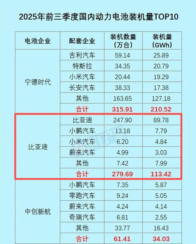 造车反倒成了副业?比亚迪电池外供暴涨 当比亚迪前三季度整车销量同比微降1.82%、全年目标下调90万辆时,其电池业务却迎来爆发式增长。 第三季度电池使用量飙升至55.1GWh,全球排名第二,同比涨幅达28.4%,更关键的是,外供占比突破20%,每五块电池就有一块供给其他车企。 点个关注吧!汽节车社,车圈热点资讯每日一扫清!【来自懂车帝车友圈】