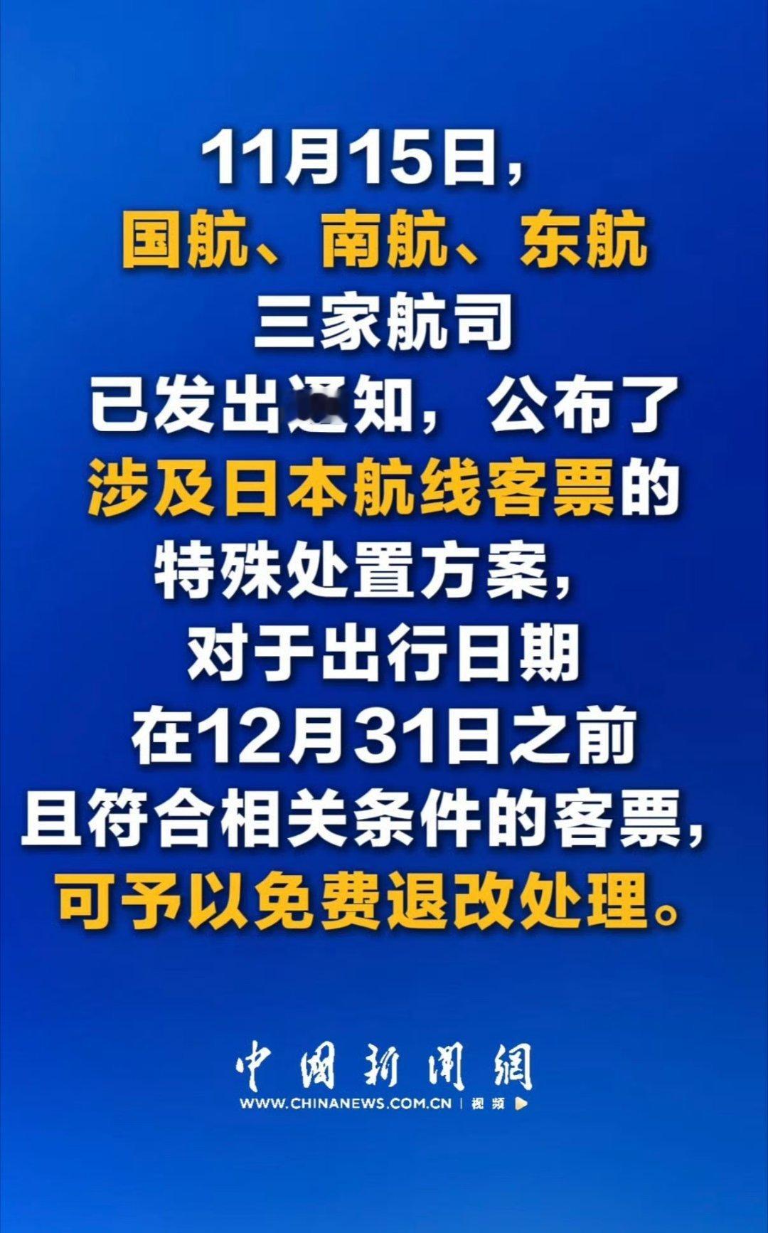 三大航司公布涉及日本航线客票的特殊处置方案!(没特别急的事就别去了…)