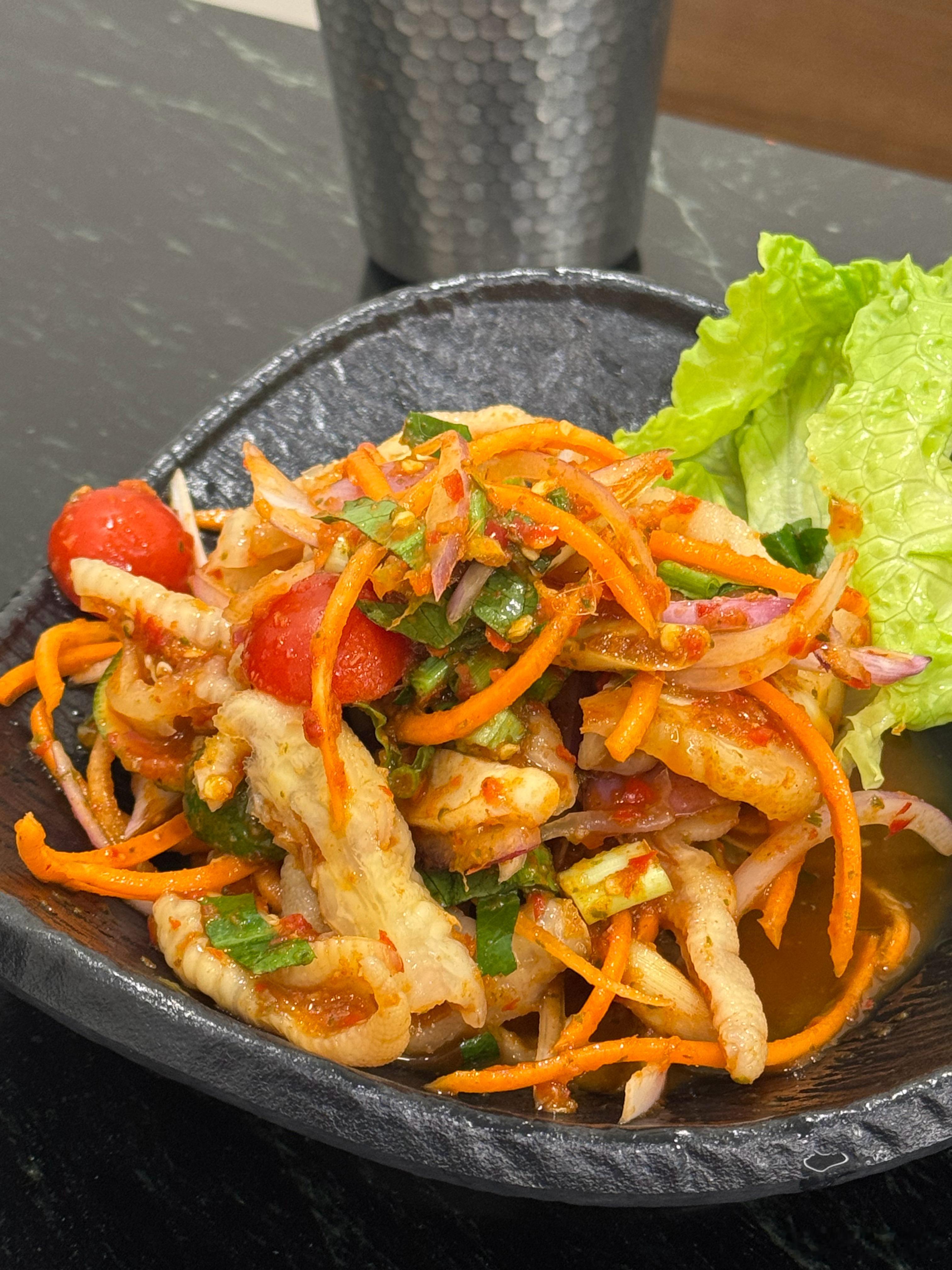收藏了很久的一家泰国菜,因为有点远一直没有打卡,今天终于去拔草因为关注了这个店老板的账号,是和一个泰国人合伙做的这家店,她经常会分享菜品的研发、用料等等,感觉是一个很正宗的泰餐位置在一个不太方便的巷子里面,味道怎么说呢,如果没有关注老板,就从本身来说可能只会打60分,没有我上次分享的那家好吃,人均100