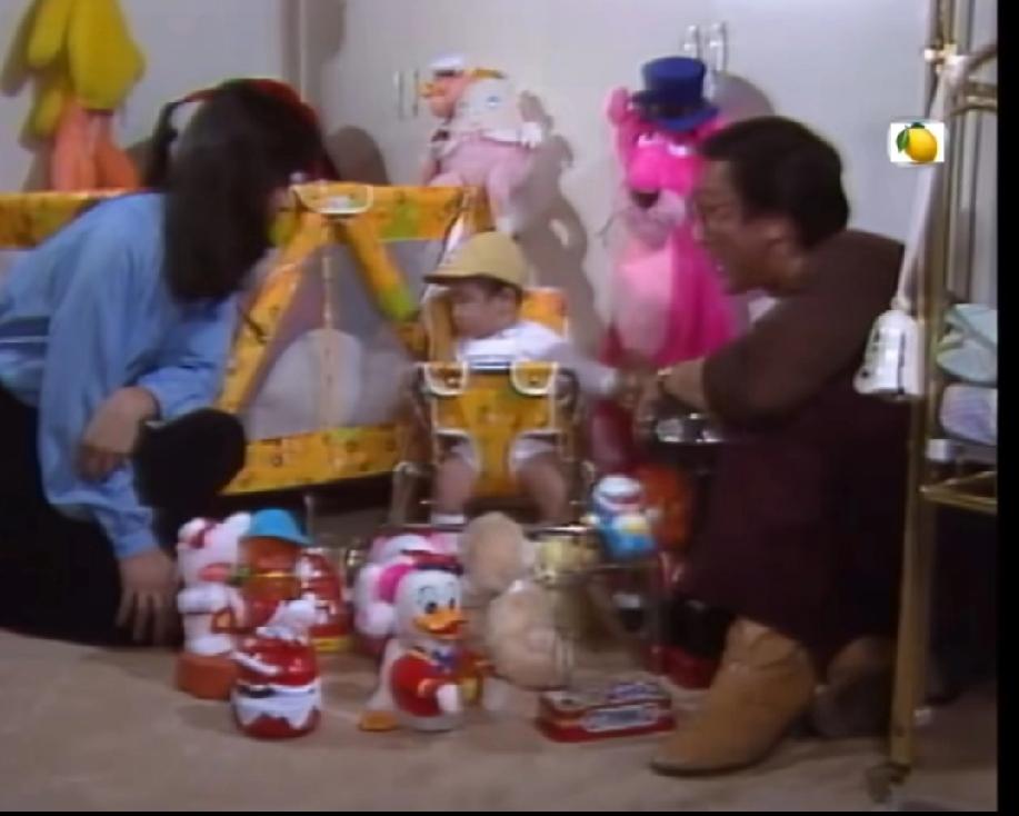 四十年前谢霆锋的童年已经达到这样的生活条件了,电动玩具地上放满了,后面还有粉红豹