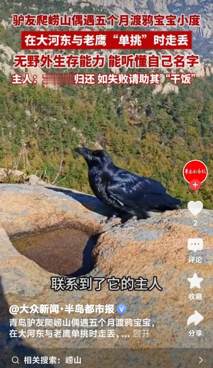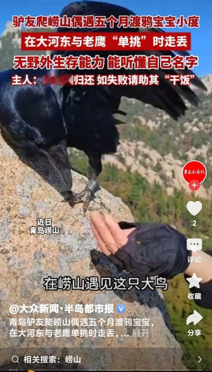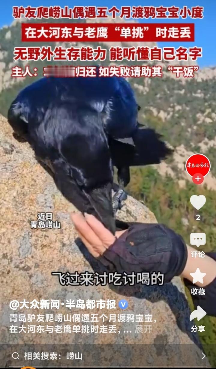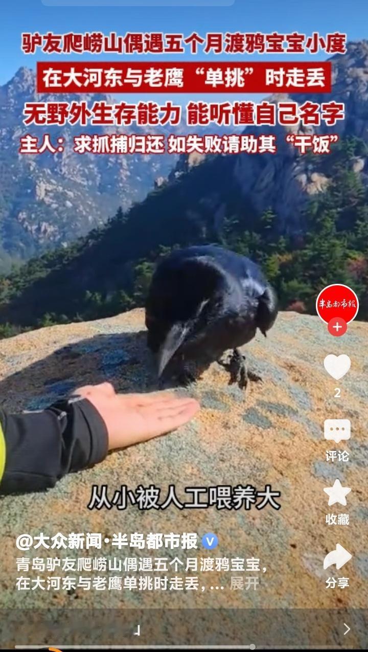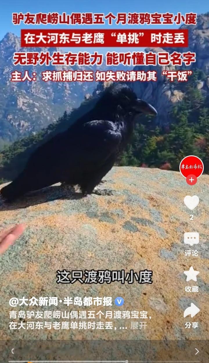 青岛崂山惊现“干饭王”渡鸦!与老鹰单挑走丢后疯狂讨饭,全网急寻捕鸟高手助它回家干饭 (來源:半島都市報) 崂山深处传来一段啼笑皆非的奇闻。一名驴友在蜿蜒的山路上,偶遇一只圆滚滚的渡鸦宝宝,它不躲不闪,反而歪着脑袋凑近人类,仿佛在说:“饿饿,饭饭!”这只名叫“小度”的五个月大渡鸦,瞬间用它的呆萌击中了无数人的心。但谁能想到,它竟是因与老鹰“单挑”败北而流落山野的“落难小王子”? 小度的身世堪称传奇。据主人透露,这只渡鸦从小被人工喂养长大,早已习惯了“饭来张口”的日子。它精通人类社交,能听懂自己的名字,甚至会模仿简单的声音。然而,一场与大河东老鹰的“江湖对决”,让它不慎与主人走散。没有野外生存技能的小度,从此开始了它的“崂山求生记”——只不过,它的求生方式竟是追着游客讨饭吃! 想象一下这样的画面:云雾缭绕的崂山石阶上,一只羽毛乌黑油亮的渡鸦,蹦跳着拦住登山者的去路。它不抢不闹,只是用圆溜溜的眼睛盯着你手中的零食袋,仿佛在无声控诉:“本宝宝快饿扁啦!”有山友拍下视频,小度甚至熟练地啄开包装袋,对面包和水果来者不拒。网友戏称:“这哪是渡鸦?分明是崂山新晋‘干饭王’!” 但笑声背后藏着一丝心酸。主人心急如焚地发出求助:小度没有独立生存能力,若无人投喂,很可能饿死山中。他恳请遇到小度的游客尝试“抓捕归还”,若实在捉不住,至少帮它填饱肚子。“干饭”二字看似幽默,却是一个主人最朴素的祈求——活着,比什么都重要。 这场“渡鸦寻主记”折射出更深层的人性温情。在钢筋水泥的城市里,我们习惯了冷漠与疏离,但一只小鸟的困境竟能让全网行动起来。社交媒体上,有人整理出崂山常见投喂点,有人自发组织搜寻小队,还有家长带着孩子上山“偶遇”,只为教他们何为生命的责任。小度像一面镜子,照见了我们心底最柔软的善意。 生态专家却对此忧心忡忡。渡鸦本是智力超群的鸟类,野生种群本应翱翔天际。小度的遭遇背后,暗藏着人工饲养野生动物的争议。当人类以爱为名将它们驯化,是否也剥夺了它们与生俱来的野性?这场“老鹰单挑”的意外,或许正是自然对小度的警示:属于天空的生命,终须回归天空。 眼下,崂山的松林间仍回荡着小度的叫声。它或许不明白为什么两脚兽们总想抓住自己,但它一定记得那些递来食物的温暖手掌。有驴友笑称:“它现在可是崂山网红,走路都带风!”而主人仍在等待一个奇迹——希望某天推开家门,能看到那个熟悉的小身影立在窗台,扯着嗓子喊:“开饭啦!” 这个故事没有结局,因为每一双注视崂山的眼睛都可能成为转折。下次你若踏足那片青山,不妨留心一只胆大包天的黑色小鸟。它可能突然跳上你的背包,也可能在你脚边打滚撒泼。但请记住,它不是在表演,而是在用全部本能呼喊:“带我回家,我想活下去。”