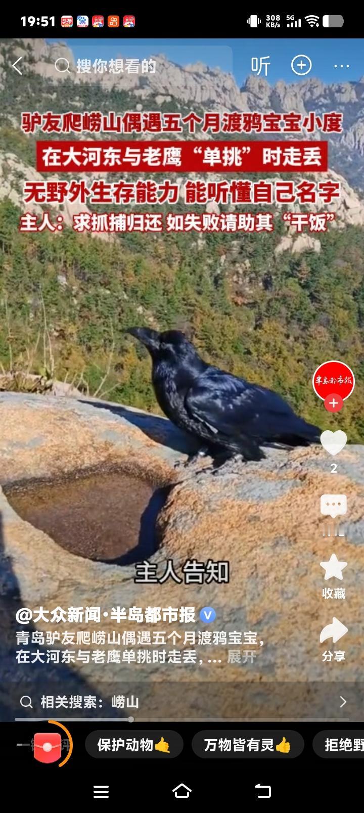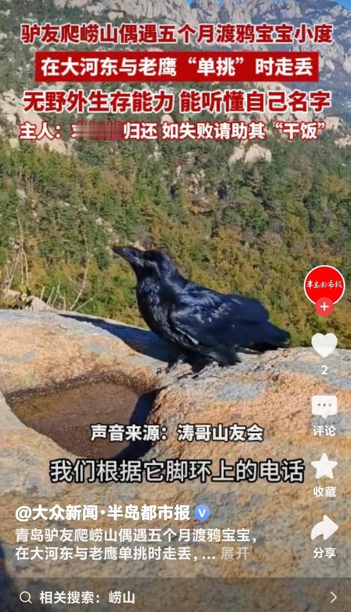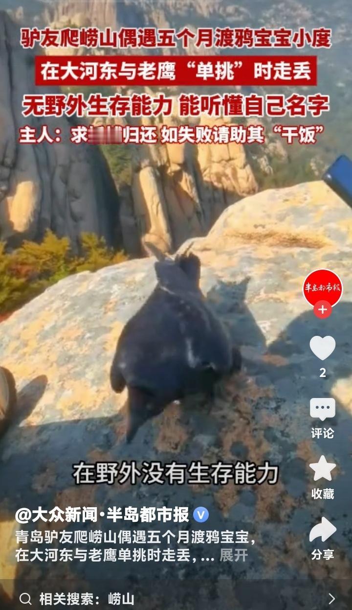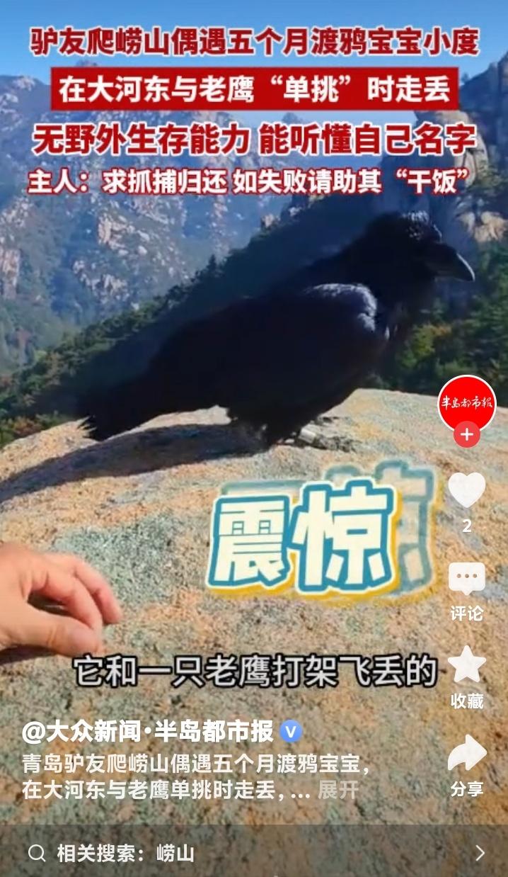 青岛崂山惊现“干饭王”渡鸦!与老鹰单挑走丢后疯狂讨饭,全网急寻捕鸟高手助它回家干饭 (來源:半島都市報) 崂山深处传来一段啼笑皆非的奇闻。一名驴友在蜿蜒的山路上,偶遇一只圆滚滚的渡鸦宝宝,它不躲不闪,反而歪着脑袋凑近人类,仿佛在说:“饿饿,饭饭!”这只名叫“小度”的五个月大渡鸦,瞬间用它的呆萌击中了无数人的心。但谁能想到,它竟是因与老鹰“单挑”败北而流落山野的“落难小王子”? 小度的身世堪称传奇。据主人透露,这只渡鸦从小被人工喂养长大,早已习惯了“饭来张口”的日子。它精通人类社交,能听懂自己的名字,甚至会模仿简单的声音。然而,一场与大河东老鹰的“江湖对决”,让它不慎与主人走散。没有野外生存技能的小度,从此开始了它的“崂山求生记”——只不过,它的求生方式竟是追着游客讨饭吃! 想象一下这样的画面:云雾缭绕的崂山石阶上,一只羽毛乌黑油亮的渡鸦,蹦跳着拦住登山者的去路。它不抢不闹,只是用圆溜溜的眼睛盯着你手中的零食袋,仿佛在无声控诉:“本宝宝快饿扁啦!”有山友拍下视频,小度甚至熟练地啄开包装袋,对面包和水果来者不拒。网友戏称:“这哪是渡鸦?分明是崂山新晋‘干饭王’!” 但笑声背后藏着一丝心酸。主人心急如焚地发出求助:小度没有独立生存能力,若无人投喂,很可能饿死山中。他恳请遇到小度的游客尝试“抓捕归还”,若实在捉不住,至少帮它填饱肚子。“干饭”二字看似幽默,却是一个主人最朴素的祈求——活着,比什么都重要。 这场“渡鸦寻主记”折射出更深层的人性温情。在钢筋水泥的城市里,我们习惯了冷漠与疏离,但一只小鸟的困境竟能让全网行动起来。社交媒体上,有人整理出崂山常见投喂点,有人自发组织搜寻小队,还有家长带着孩子上山“偶遇”,只为教他们何为生命的责任。小度像一面镜子,照见了我们心底最柔软的善意。 生态专家却对此忧心忡忡。渡鸦本是智力超群的鸟类,野生种群本应翱翔天际。小度的遭遇背后,暗藏着人工饲养野生动物的争议。当人类以爱为名将它们驯化,是否也剥夺了它们与生俱来的野性?这场“老鹰单挑”的意外,或许正是自然对小度的警示:属于天空的生命,终须回归天空。 眼下,崂山的松林间仍回荡着小度的叫声。它或许不明白为什么两脚兽们总想抓住自己,但它一定记得那些递来食物的温暖手掌。有驴友笑称:“它现在可是崂山网红,走路都带风!”而主人仍在等待一个奇迹——希望某天推开家门,能看到那个熟悉的小身影立在窗台,扯着嗓子喊:“开饭啦!” 这个故事没有结局,因为每一双注视崂山的眼睛都可能成为转折。下次你若踏足那片青山,不妨留心一只胆大包天的黑色小鸟。它可能突然跳上你的背包,也可能在你脚边打滚撒泼。但请记住,它不是在表演,而是在用全部本能呼喊:“带我回家,我想活下去。”