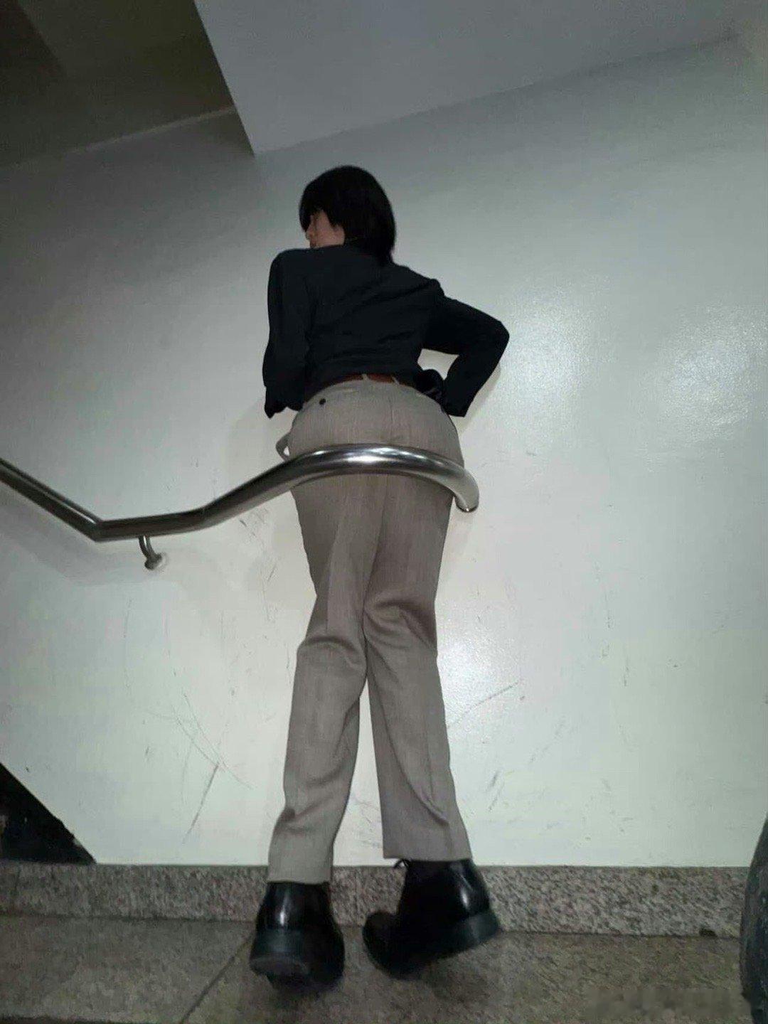 我去 感觉这个楼梯扶手真的还能创造无限的可能 哥们这个姿势有点像用扶手托住即将喷射的💩