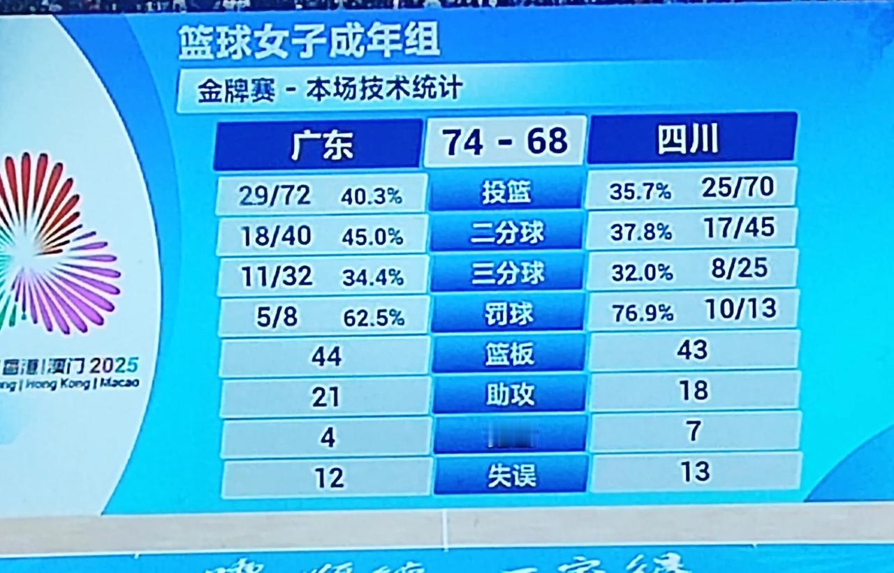 广东女篮74-68打败四川,取得金牌,难能可贵。本次广东全运男女篮双双夺冠,可喜