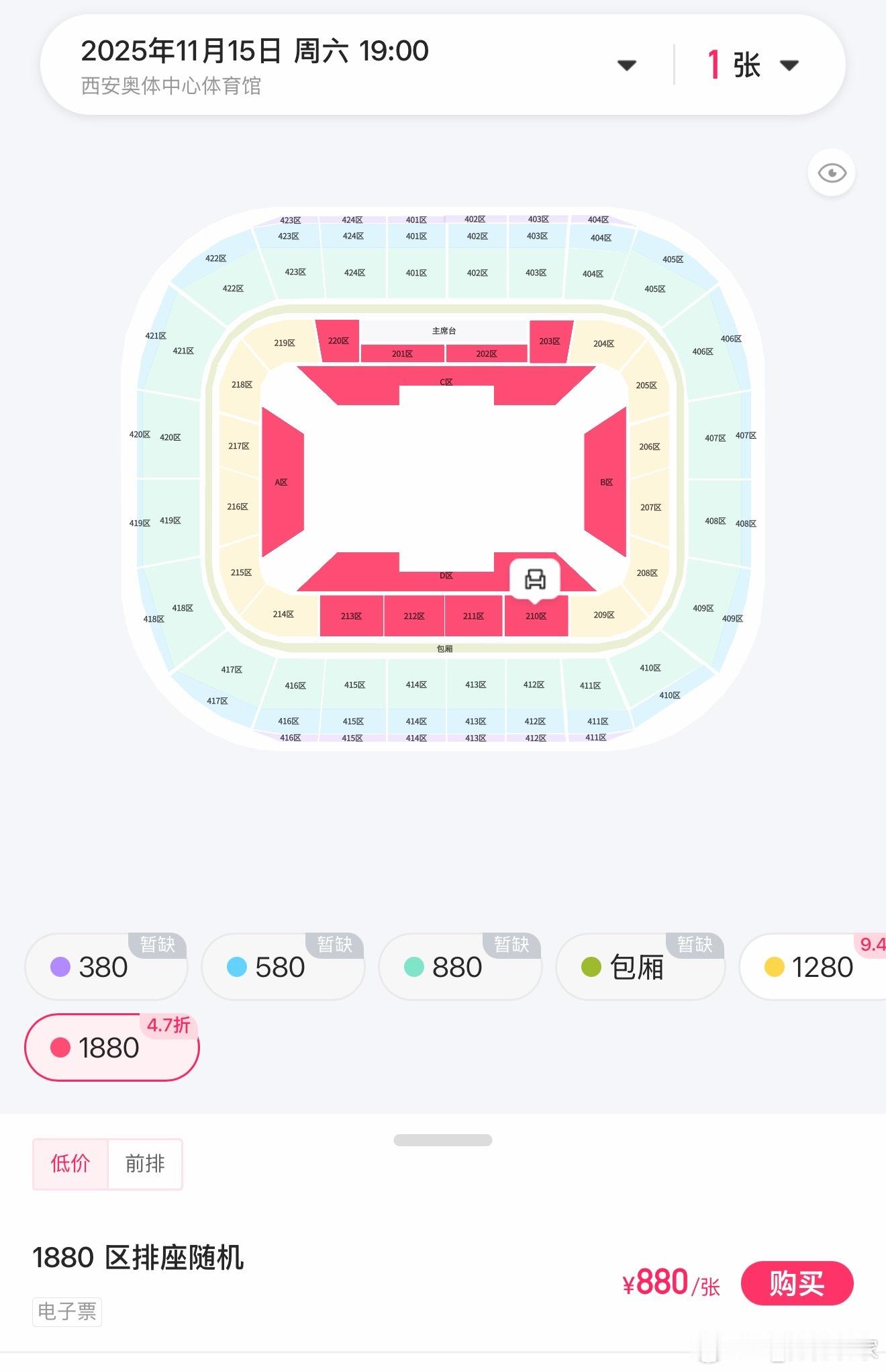 李宇春西安演唱会,我朋友找了16个人原价1880抢的票。结果我刚去看,这演唱会都马上要开始了票还在卖,内场已经打4.7折了心疼我的朋友