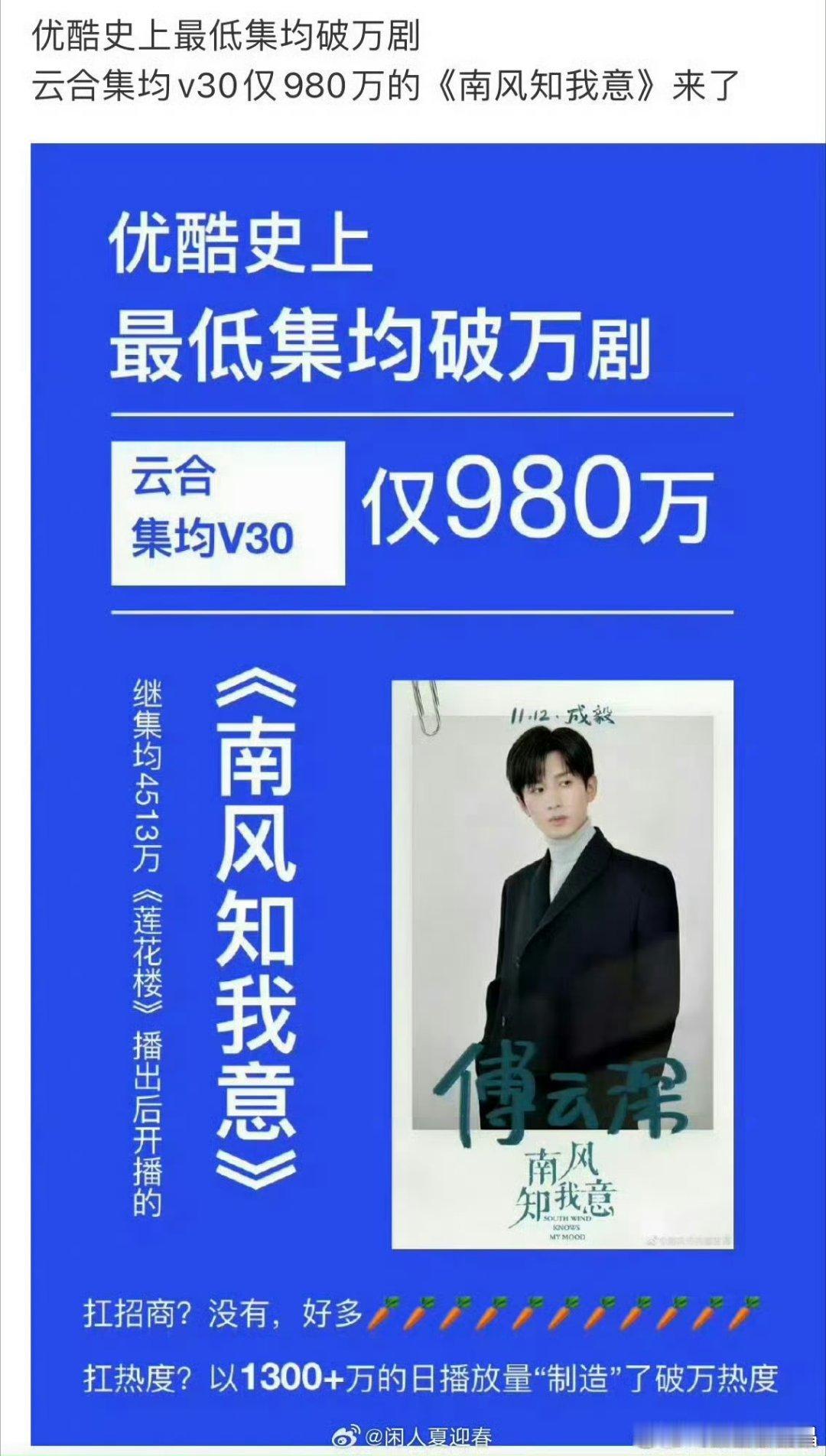 Iejj装的yxh开始岁月史书南风了,这部剧都能吹?裤子破万最低集均的剧,因为这剧播的不好还踩女主张予曦呢,现在反而吹起来了