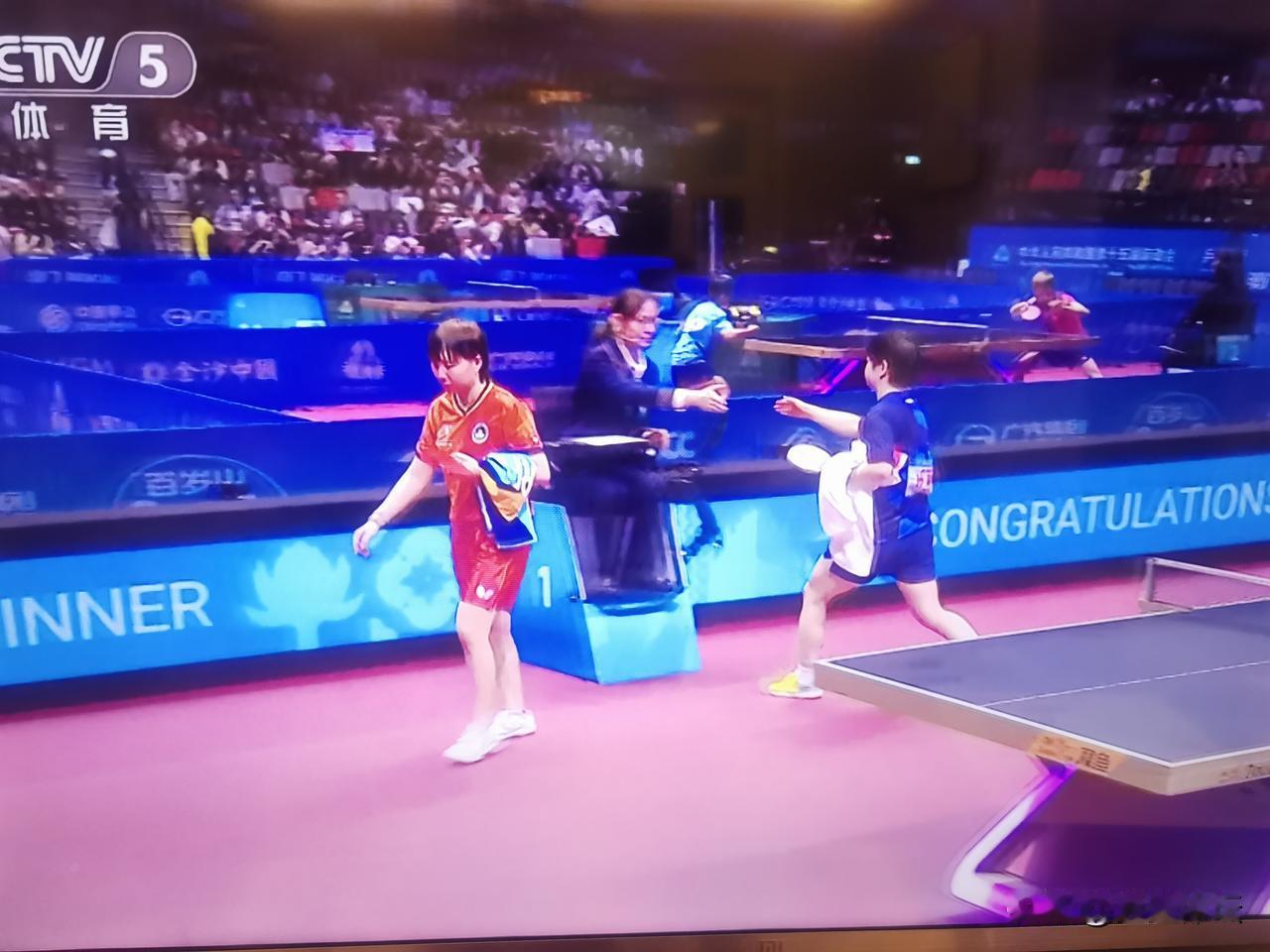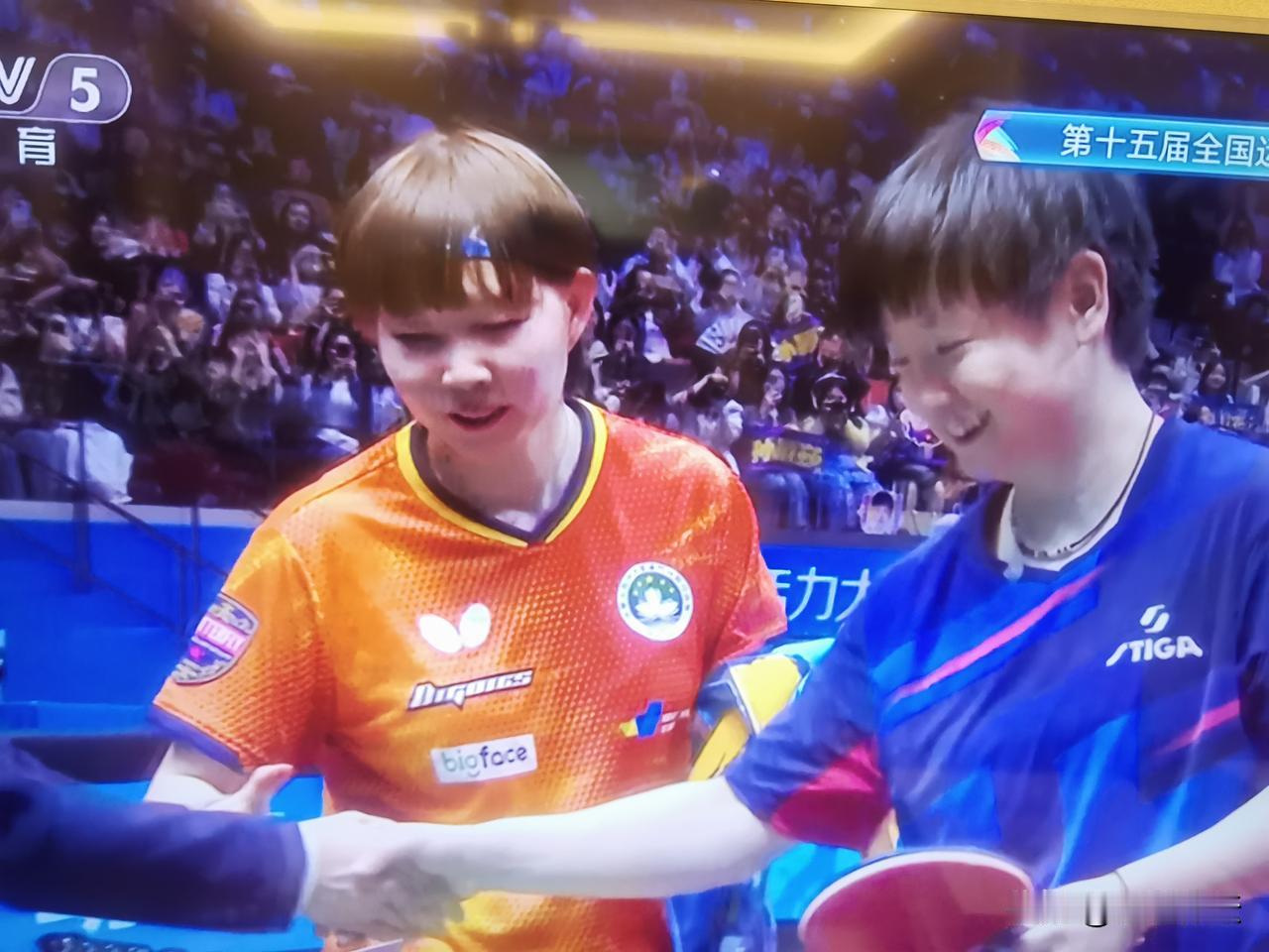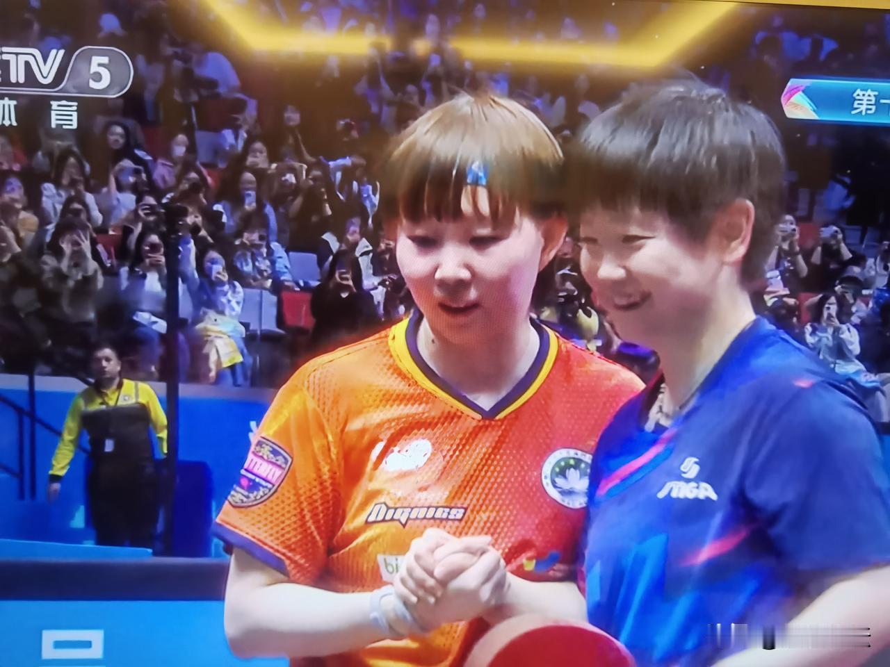 赛后这一幕太暖了!孙颖莎4:1战胜朱雨玲,挺进决赛!决赛对手是代表黑龙江队的王曼昱!这场比赛孙颖莎还是掌握了节奏,比赛中有惊无险,4:1战胜了朱雨玲! 其实朱雨玲可以看出心态比较放松,完全是在享受比赛,比赛结束的时候露出了非常开心的笑容,与孙颖莎握手祝贺,这笑容是发自内心的!