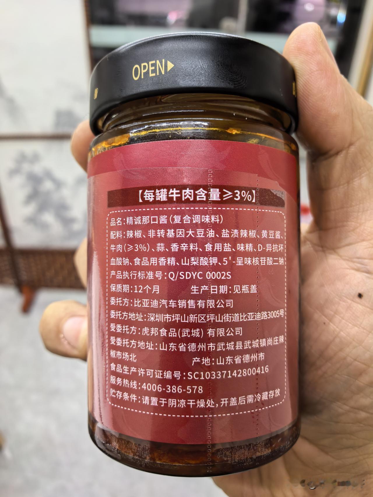 比亚迪辣椒酱,今天到货了,辣度不算高,味道不错,可以拌饭或者作为蘸酱,值得推荐,25块钱肯定有点贵,有积分可以兑换尝尝比亚迪