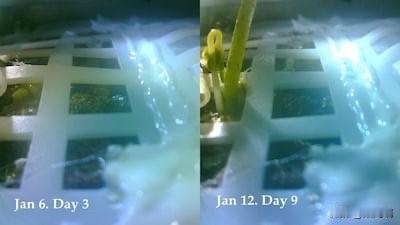 这是第一株在月球上发芽的植物,它是一株棉花幼苗。 2019年1月,中国国家航天局(CNSA)的嫦娥四号(Chang'e-4)探测器成功在月球背面软着陆,这是人类历史上首次实现这一壮举。 探测器携带了一个名为“月面微型生态圈”(LME)的密封圆柱形容器,其中包含棉花、油菜、马铃薯和拟南芥(一种常见杂草)的种子,以及果蝇卵和酵母。该实验旨在模拟一个小型生态系统,研究生物体在月球低重力和强辐射环境下的生长情况。 几天后,棉花种子成功发芽,标志着人类首次在月球表面进行生物实验并获得成功,也是第一株在地球以外生长的植物。 尽管这株幼苗在随后的月球夜晚(持续约14个地球日)因极低温度(低至-170°C)而冻死,但其短暂的生命证明了在月球条件下种植植物是可行的,为未来建立月球基地和长期深空探索提供了宝贵的经验。
