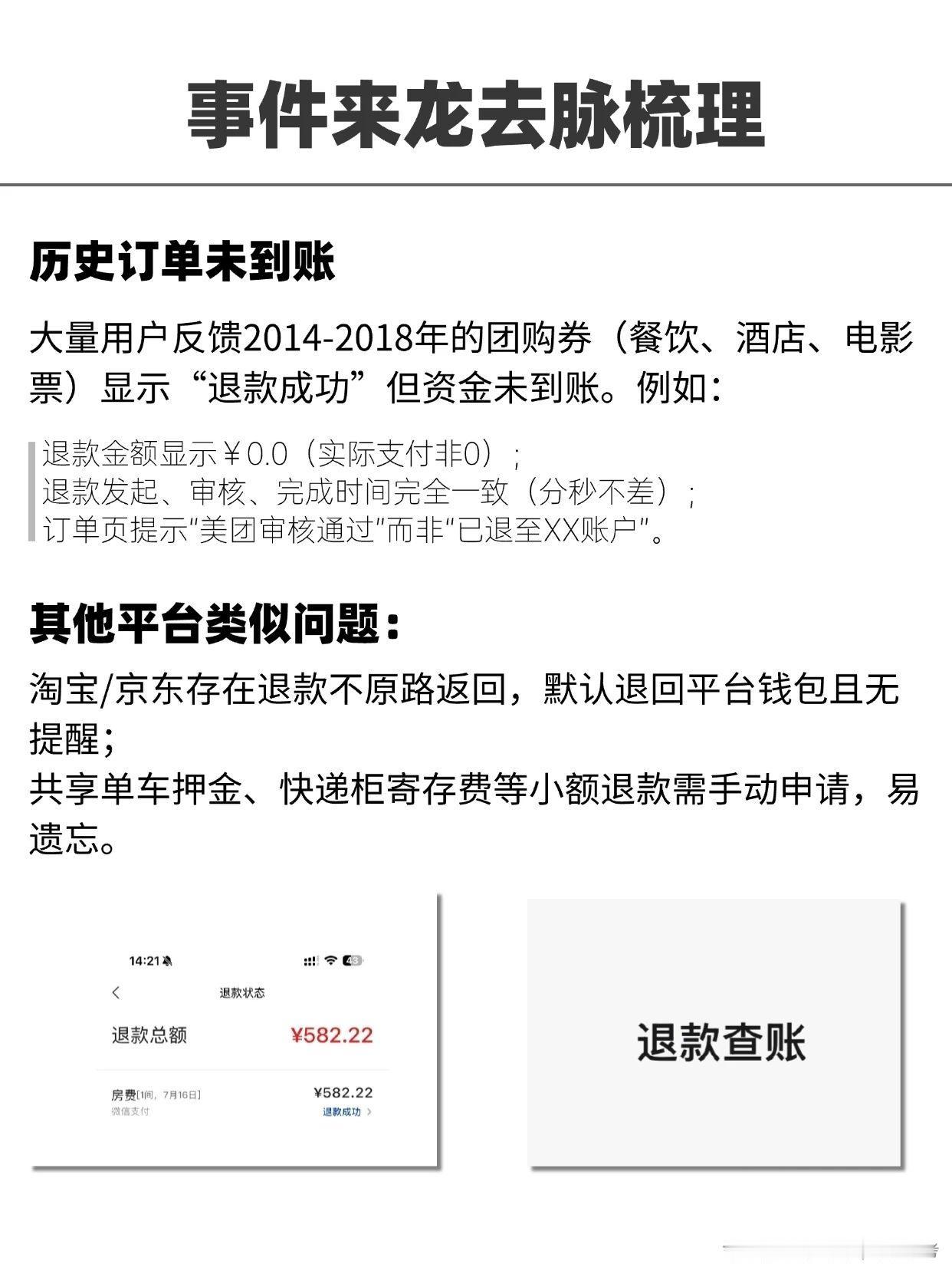 退款成功实际未到账?一招教你自查避雷出大事了,有薯友发现,古早年前的美团退款,显示退款成功了,但实际并没有返回到原支付账户…😮💨 目前看下来,14-19年间的账单,出现问题的概率更大😂大家赶紧自查一下。我在图3也教了大家自查的方法。 这期内容很实用,赶紧收藏!!!