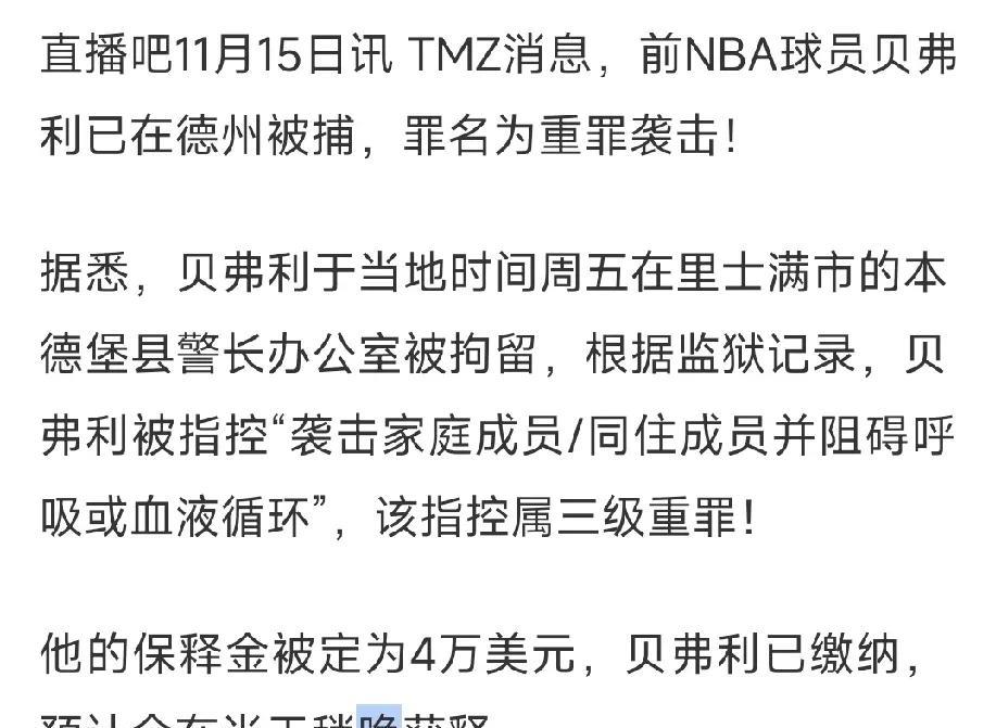 不光打篮球狠,对家里人也狠! 贝弗利相信球迷都知道,是一名狠角色,在防守端那是不留余力,死亡缠绕那种类型的球员,但是没想到贝弗利不光在球场狠,对家里人也狠! 近日,贝弗利就因家暴在德州被捕!指控为三级重罪! 球迷:是开启了死亡缠绕模式了吗!