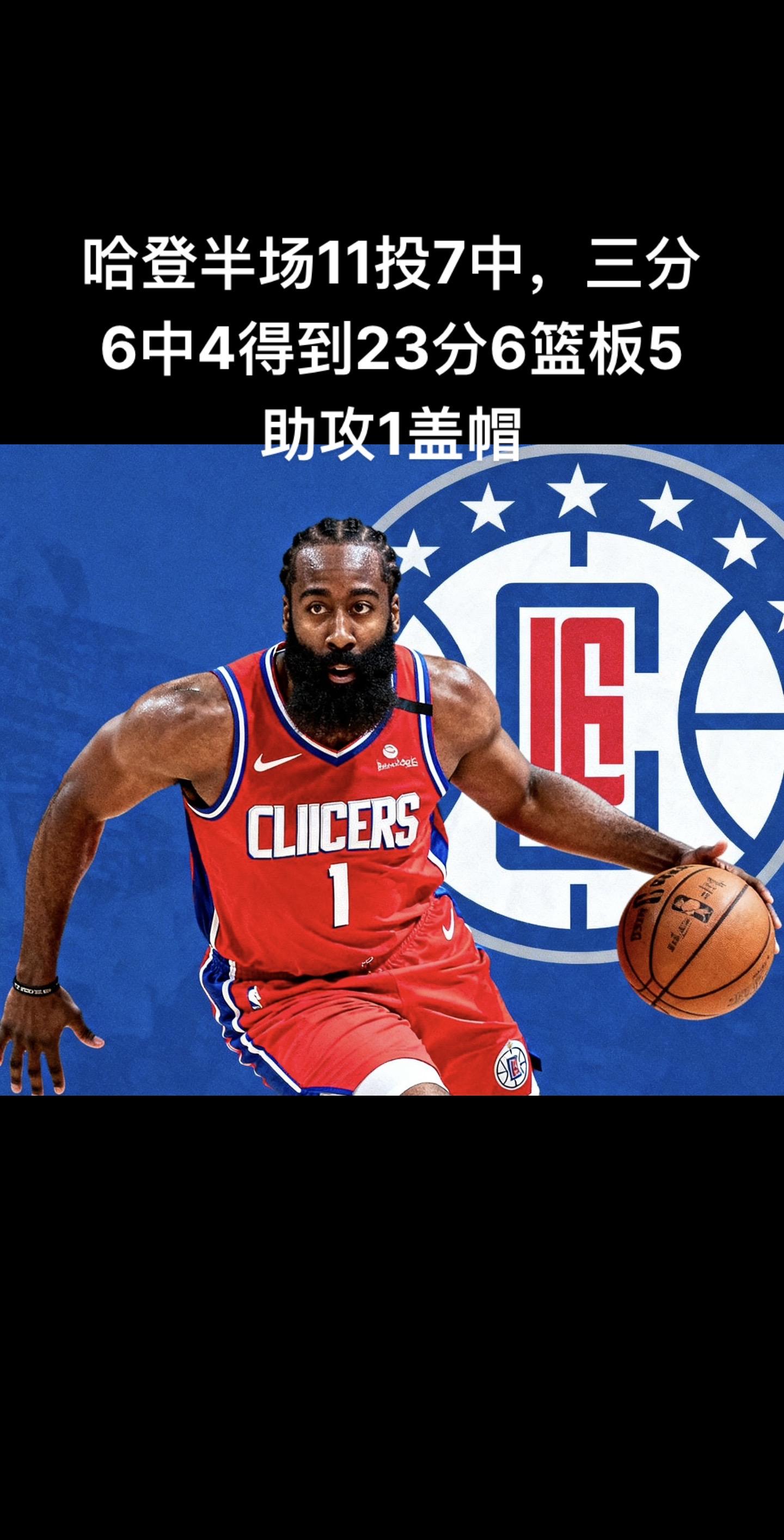 哈登状态火爆!半场11投7中、三分6中4高效轰下23分,还兼顾6篮板5助攻1盖帽的全能表现,攻防两端存在感拉满。哈登快船vs独行侠篮球来nbamrd先生