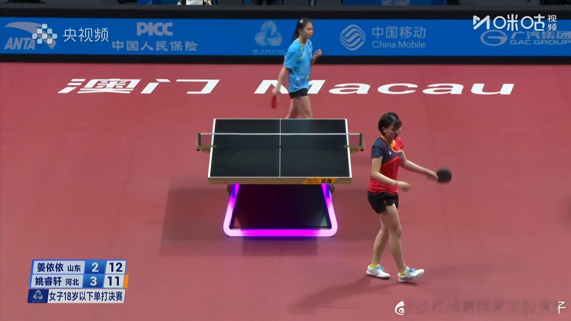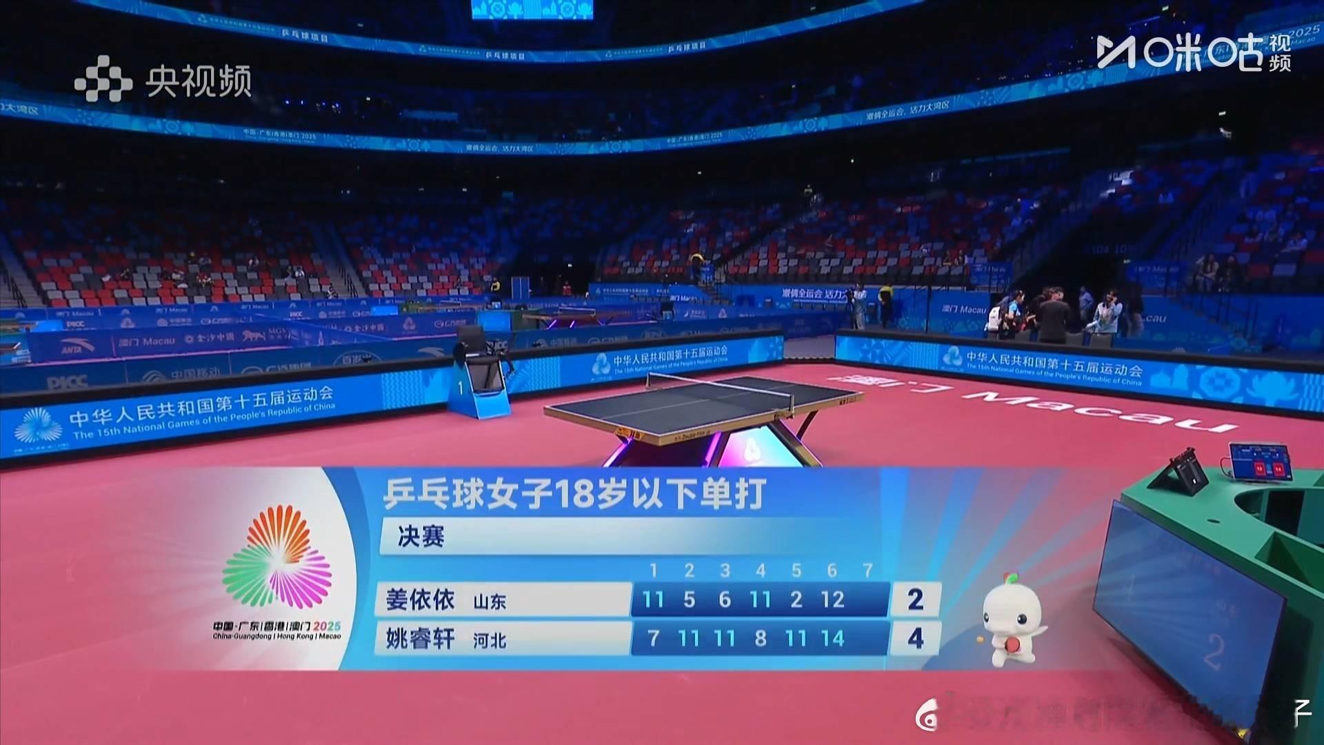 姚睿轩4比2姜依依(-7,5,6,-8,2,12)获得2025年第十五届全运会青年组女单冠军🏆姜依依获得亚军🥈