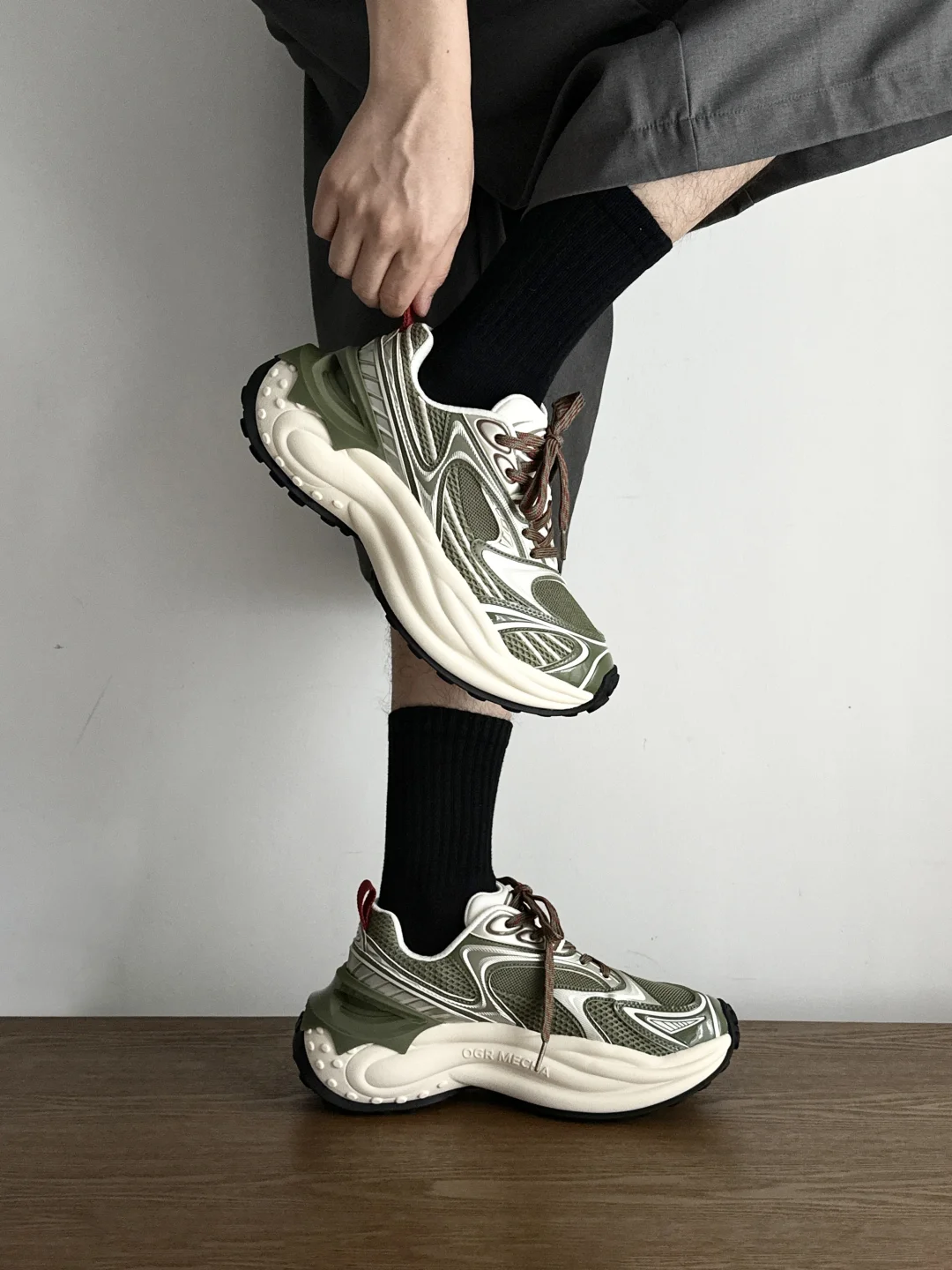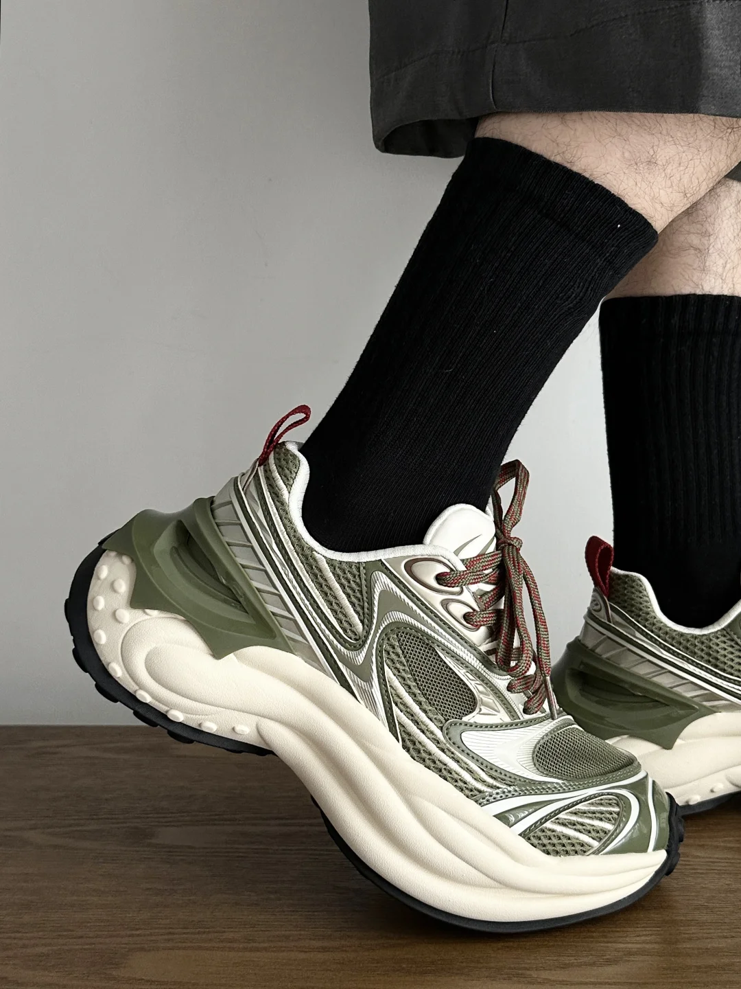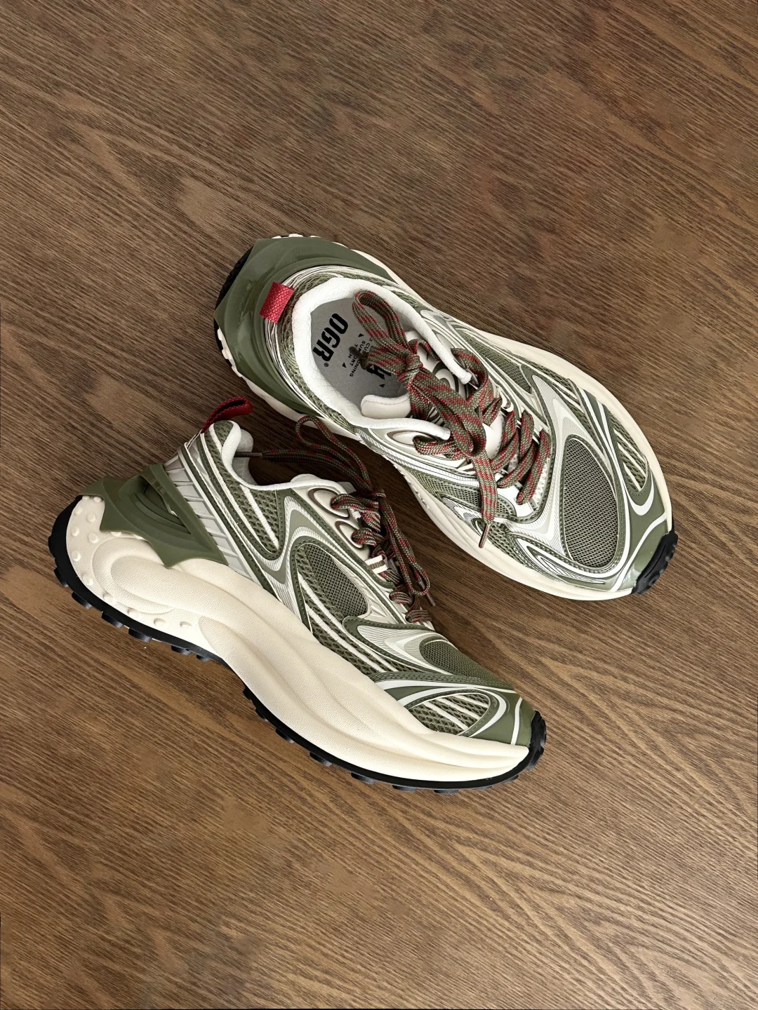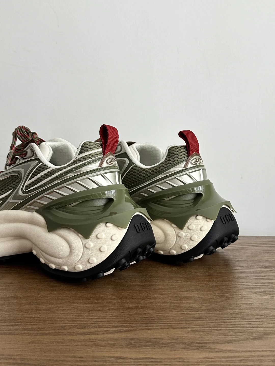 今天分享的是OGR章鱼老爹鞋 不得不说复合材料拼接的鞋面 拿到手实物真的能感受到高级感满满 我选择的是很适合夏天的绿色 很清新很亮眼夏天就得选择活力点的颜色 但但但!是这些都不是重点 重点是这双鞋它增高7cm 喜欢老爹鞋的都知道增高7cm有多香 这双鞋现在已经脱不下来了,焊死了