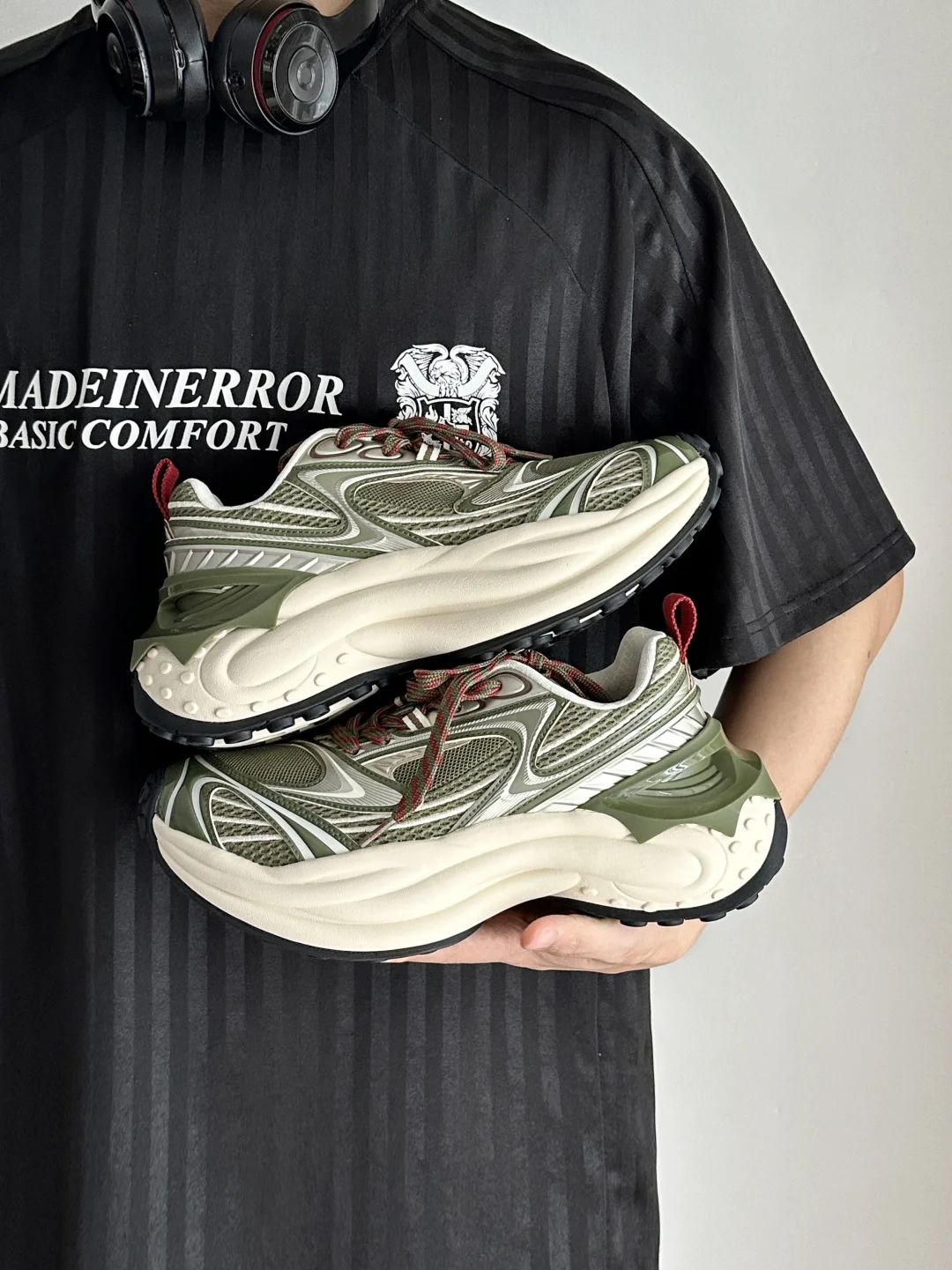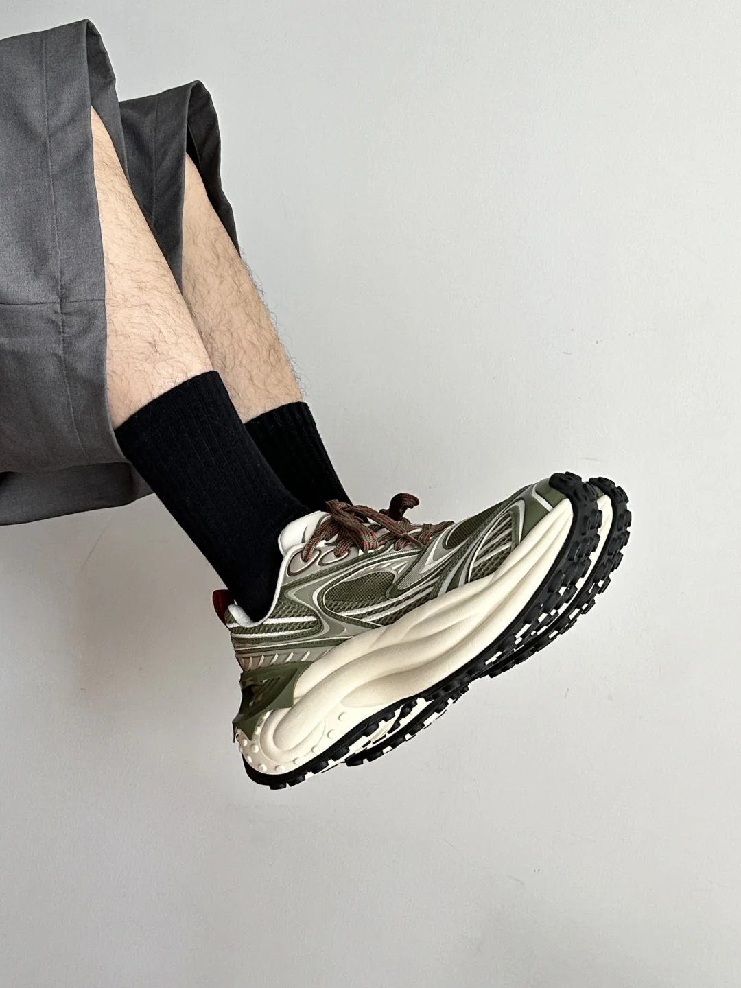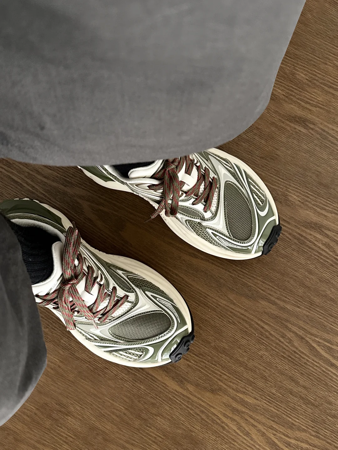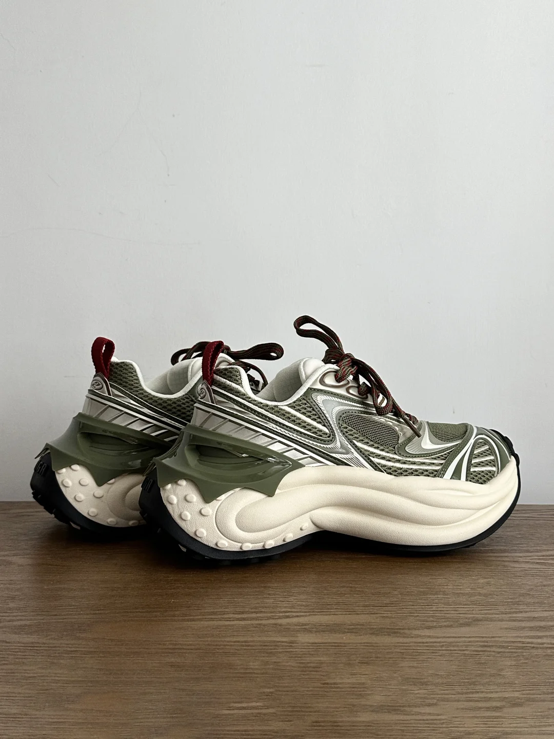 今天分享的是OGR章鱼老爹鞋 不得不说复合材料拼接的鞋面 拿到手实物真的能感受到高级感满满 我选择的是很适合夏天的绿色 很清新很亮眼夏天就得选择活力点的颜色 但但但!是这些都不是重点 重点是这双鞋它增高7cm 喜欢老爹鞋的都知道增高7cm有多香 这双鞋现在已经脱不下来了,焊死了