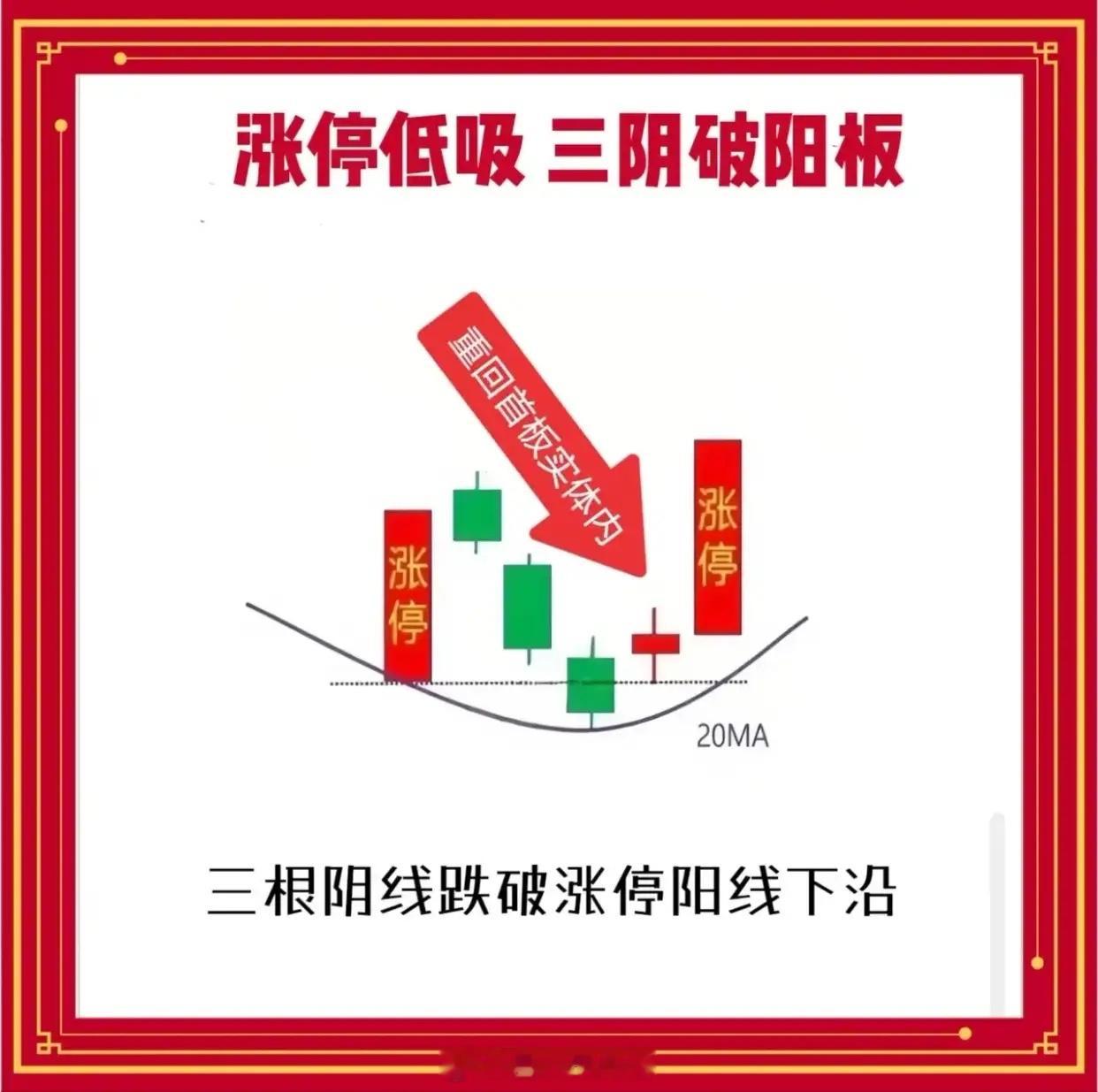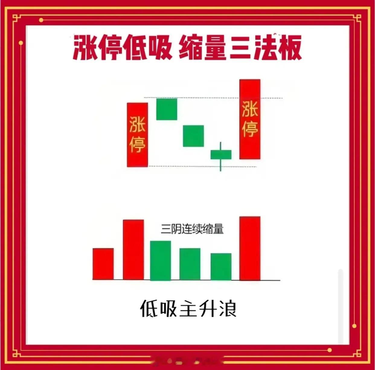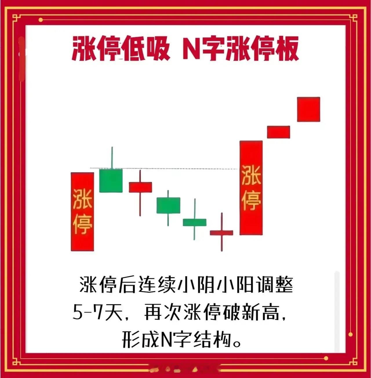 抓主升浪必看!5种涨停回踩形态+低吸口诀,新手也能精准上车想抓主升浪的散户注意了!涨停后的回踩走势,到底是主力洗盘还是出货?很多人因分不清形态、找不准买点,要么错失大牛股,要么抄底抄在半山腰,白白浪费盈利机会。其实涨停回踩是市场给出的“二次上车信号”,不同回踩形态对应不同主力意图。今天就拆解5种最实用的涨停回踩形态+低吸技巧,配上好记的操作口诀,一分钟看懂、新手直接用!一、三阴破阳板:洗盘到位的低吸信号涨停后连续走出三根小阴线,未跌破涨停当日开盘价,且成交量逐步萎缩,说明主力在清洗浮筹,抛压持续减弱。重点观察第三根阴线收盘价,若收在5日均线上方,且次日放量阳线收复前三根阴线高点,就是低吸良机。操作口诀:三阴不穿涨停底,缩量回调接筹码,放量反包就上车二、踩五均突破板:依托均线的安全买点涨停后未大幅回调,围绕5日均线震荡整理,偶尔回踩5日均线但快速拉回,成交量保持温和,说明5日均线支撑强劲,主力不愿让股价脱离成本区。当股价在5日均线上方,再次放量突破前期震荡平台高点时,是确定性低吸买点。操作口诀:涨停回踩五日线,震荡不破有支撑,放量突破跟进去三、爆量分歧板:分歧转一致的上车机会涨停当天放出巨量,盘中多次开板又封板,多空分歧激烈,部分获利盘出逃。次日股价未大跌,反而缩量回踩10日均线或前期平台边缘并快速企稳,说明市场分歧转一致,主力在承接抛盘。此时缩量企稳后首次放量上涨,就是低吸信号。操作口诀:爆量分歧涨停板,缩量回踩不深跌,企稳放量就介入四、N字回踩板:强势回调后的主升延续先拉一个涨停,随后缩量回调2-3天,回踩幅度不超过涨停涨幅的50%,形成“N”字左侧回调形态。回调时成交量持续萎缩,说明抛压衰竭、主力未出逃。当股价再次放量突破前期涨停高点,N字形态完成、主升浪延续,可低吸跟进。操作口诀:N字回调半程止,缩量企稳无抛压,突破前高再进场五、缩量三法板:震荡洗盘后的加速信号涨停后未直接拉升,连续三天小阴小阳震荡整理,成交量逐步缩量,三根K线振幅不大,且始终在涨停价下方附近运行,说明主力在震荡洗盘、清洗不坚定筹码。第四天股价放量突破这三天的震荡区间高点,洗盘结束、主升浪即将加速,可果断低吸。操作口诀:缩量三法横盘震,筹码集中无分歧,放量突破加速涨以上就是5种涨停回踩的核心形态+低吸技巧,每一种都配了好记的口诀,下方还附了对应案例图,方便大家对照复盘。记住,涨停回踩的核心是“看位置、看成交量、看突破”,结合口诀实操,能大幅提高低吸成功率,避开主力陷阱。希望这期干货能帮到正在找买点的你,记得点赞转发,让更多散户兄弟少走弯路,我们下期再见!风险提示:本文内容仅为技术分析分享,不构成任何投资建议。理财有风险,入市需谨慎。