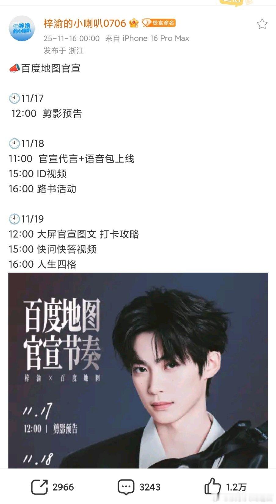 小喇叭滴滴滴响了!恭喜梓渝拿下国民商务百度地图,官宣节奏马上要来了~每次看商务口播和TVC都在感叹梓渝的口条优秀,百度地图和他适配度好高!