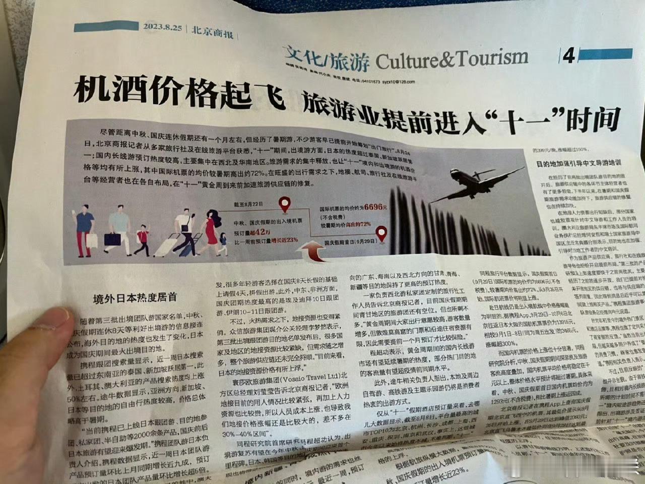 每次吵日本旅游相关新闻,我就想起这个报纸。同一天的北京商报,不同的版面。