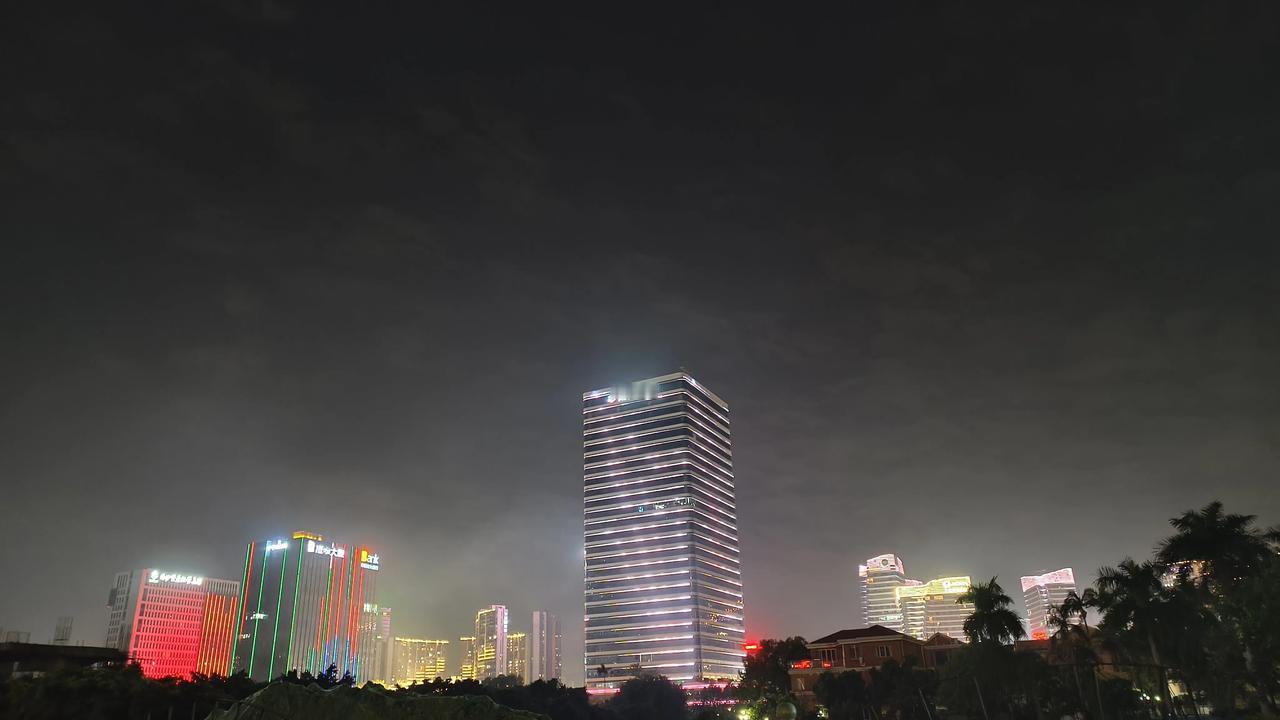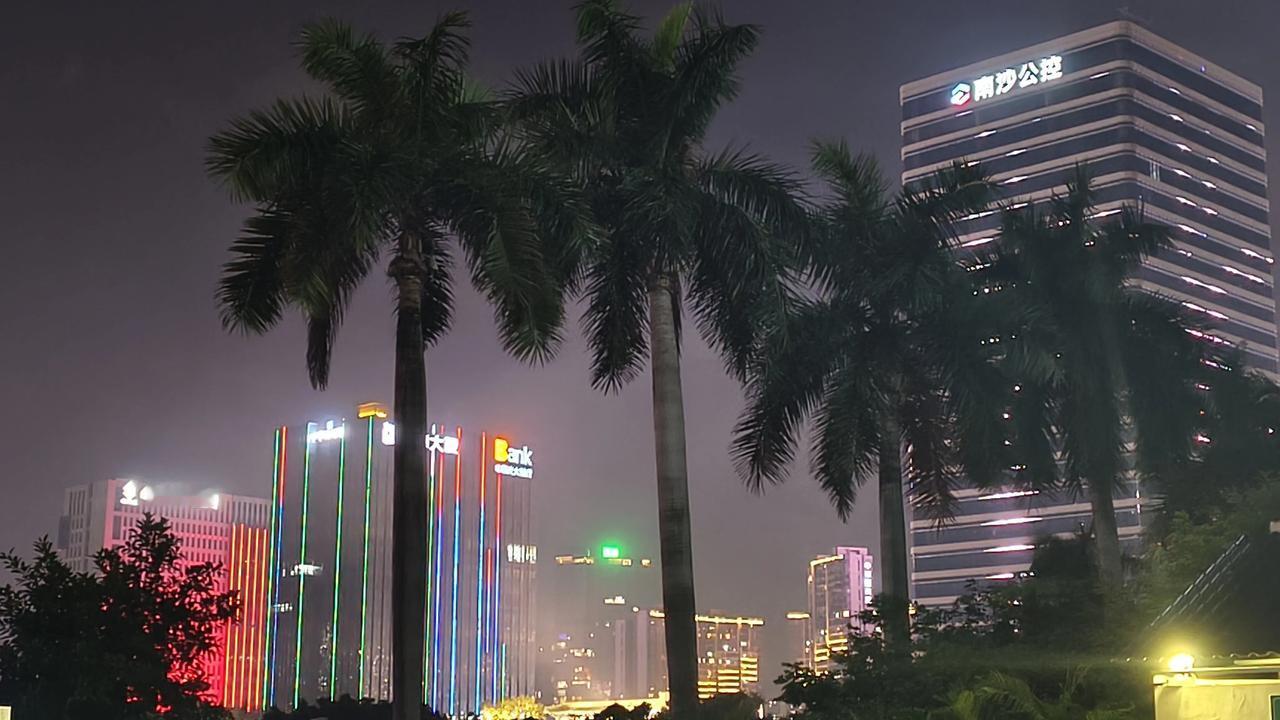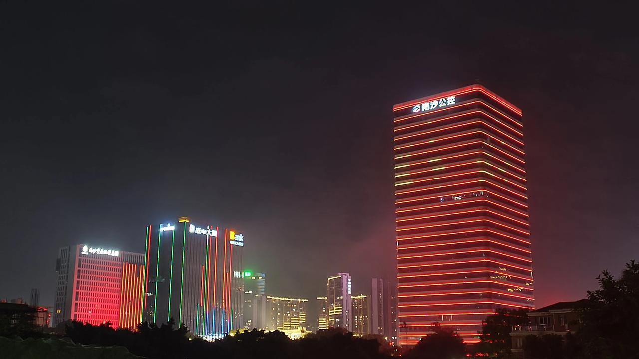 南沙夜景,是把霓虹揉进了晚风中✨ 因为夜一暗下来,整栋楼开始发光,镜头里这栋“南沙公控”大楼,一会儿是热烈的红条灯带铺满立面,一会儿又切换成清冷的银白线条,和旁边红绿交织的楼宇撞在一起,像把调色盘打翻在了夜空里。我出来散步,每天忙完全运会场馆的赛事,回来休息,紧张的心情全然放松下来。棕榈树在风里晃着叶子,远处的灯光裹着点雾蒙蒙的柔,明明是都市夜景,却混着点热带晚风的松弛感~ 南沙的夜,是抬头就能撞见的浪漫呀🌙