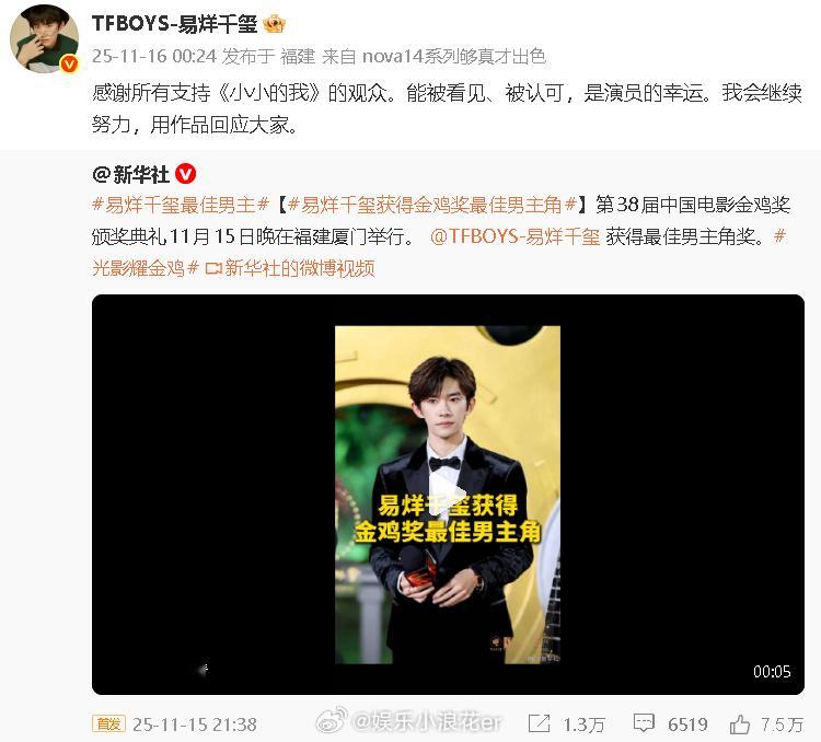 惠英红发文:恭喜袁富華老師!恭喜思誠導演!恭喜墨導!恭喜小花!恭喜千璽!恭喜楚曦