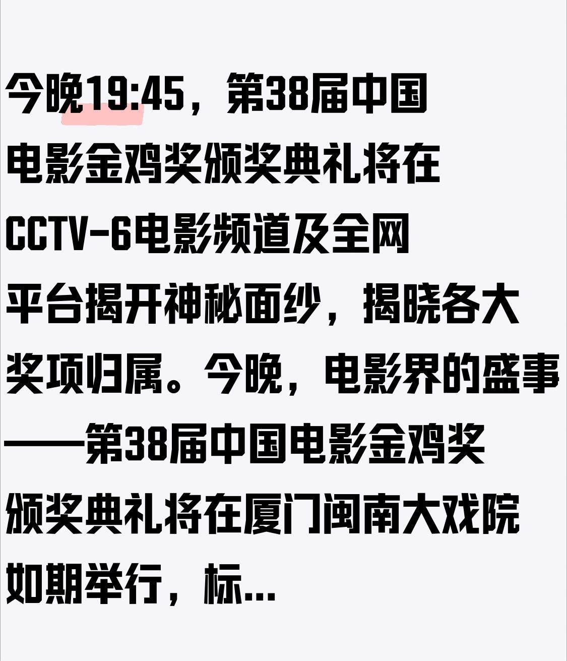今晚19:45,第38届中国电影金鸡奖颁奖典礼将在CCTV-6电影频道及全网平台揭开神秘面纱,揭晓各大奖项归属。 今晚,电影界的盛事——第38届中国电影金鸡奖颁奖典礼将在厦门闽南大戏院如期举行,标志着为期一周的2025中国金鸡百花电影节落下帷幕。本届金鸡奖共设多个奖项,包括最佳男女主角、最佳导演处女作、最佳外语片等,众多优秀电影作品和演员将在此一决高下。值得一提的是,备受瞩目的哪吒主创团队因新片制作未能亲临现场,但他们依然通过线上方式表达了对这一荣誉的重视和支持。此外,知名电影人陈飞宇、宋茜将担任此次电影节的厦门推介人,而蓝羽、邓超、苏有朋、倪妮则将担任颁奖典礼的主持人,为观众带来一场视听盛宴。这场盛会不仅展示了中国电影的辉煌成就,也为中国电影人提供了展示才华的舞台。