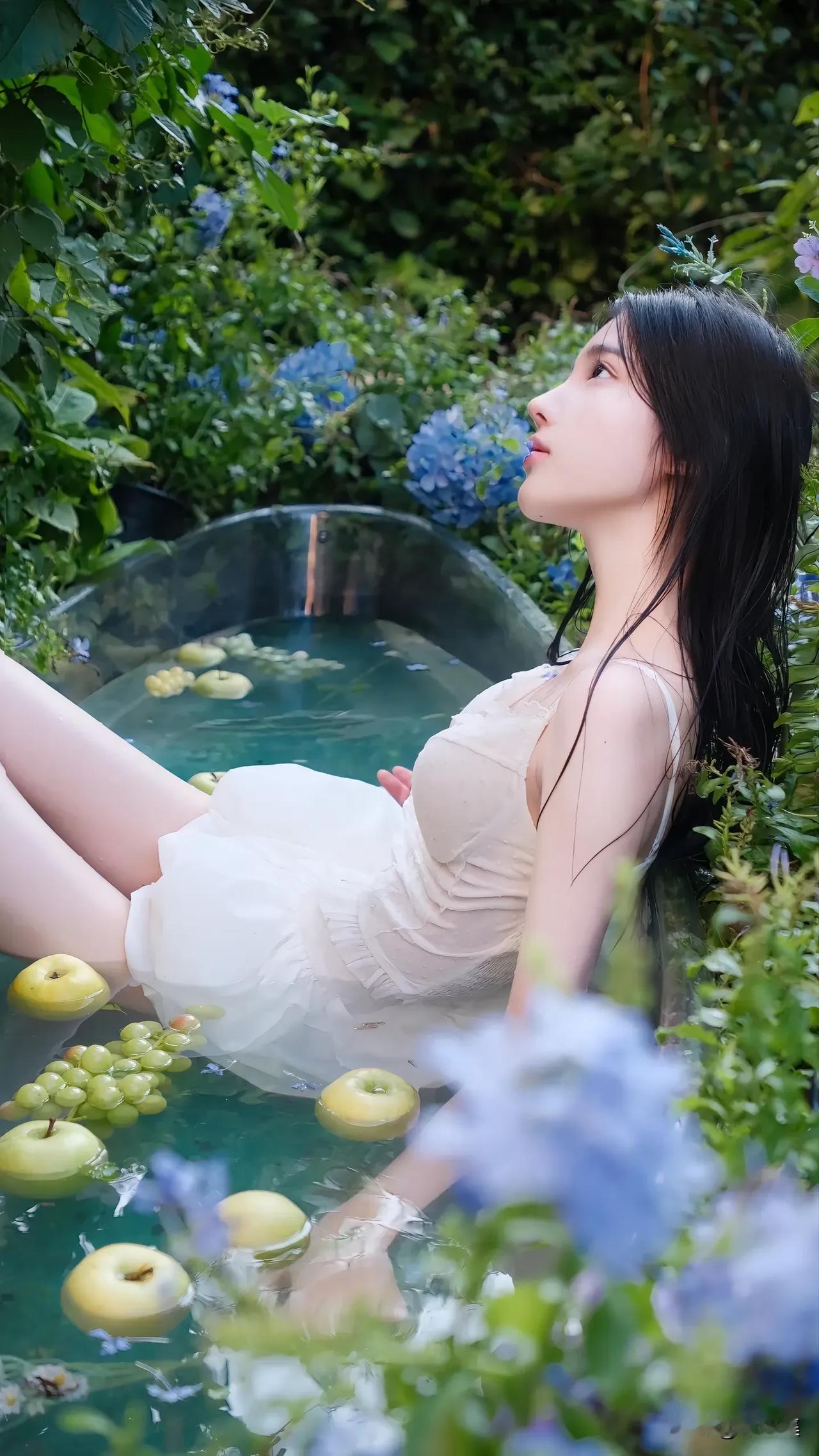 夏日穿搭指南:优雅黑裙与自然绿意相映成趣