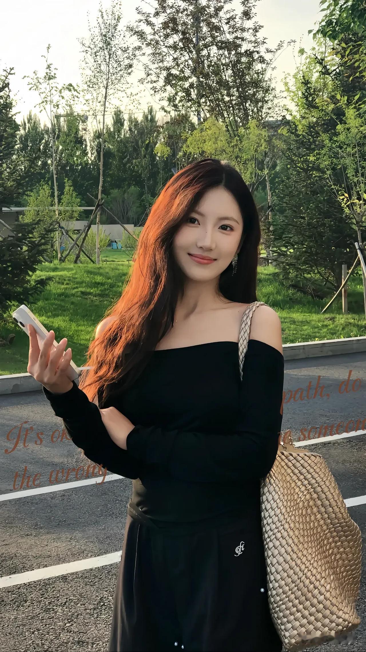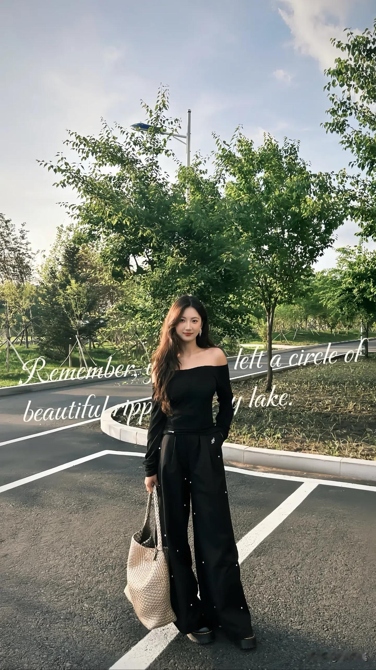 夏日穿搭指南:优雅黑裙与自然绿意相映成趣
