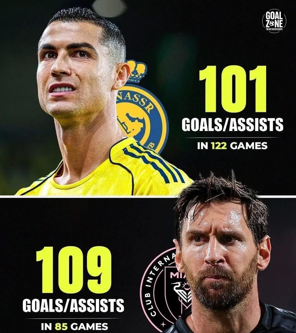 两年半,梅西在迈阿密国际出场85次,进球助攻合计109个;三年里,C罗在利雅得胜利出场122次,进球助攻合计101个。 更重要的是,C罗连续三年四大皆空,而梅西却给球队带来两座冠军,开天辟地创历史。 C罗哪来的脸说自己强于梅西? 无耻之尤。