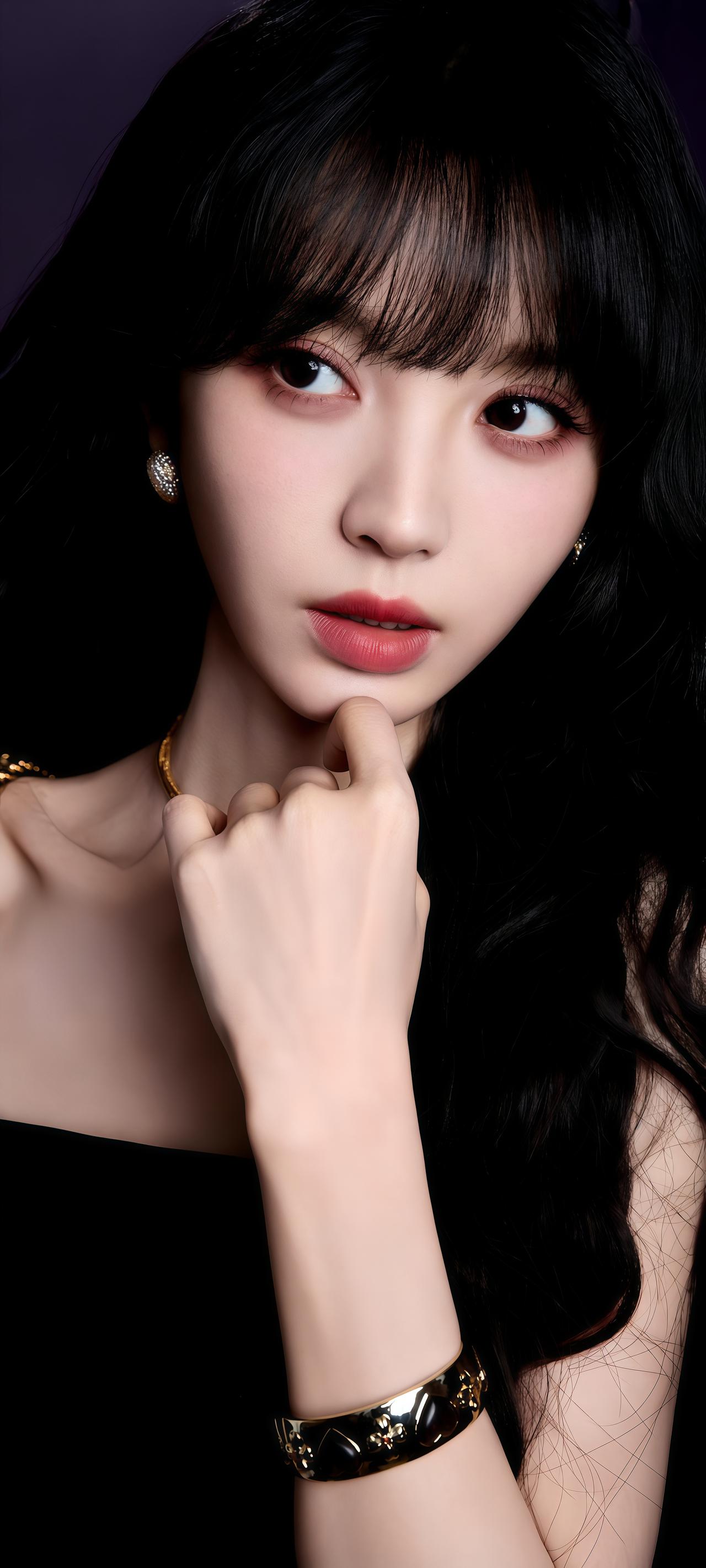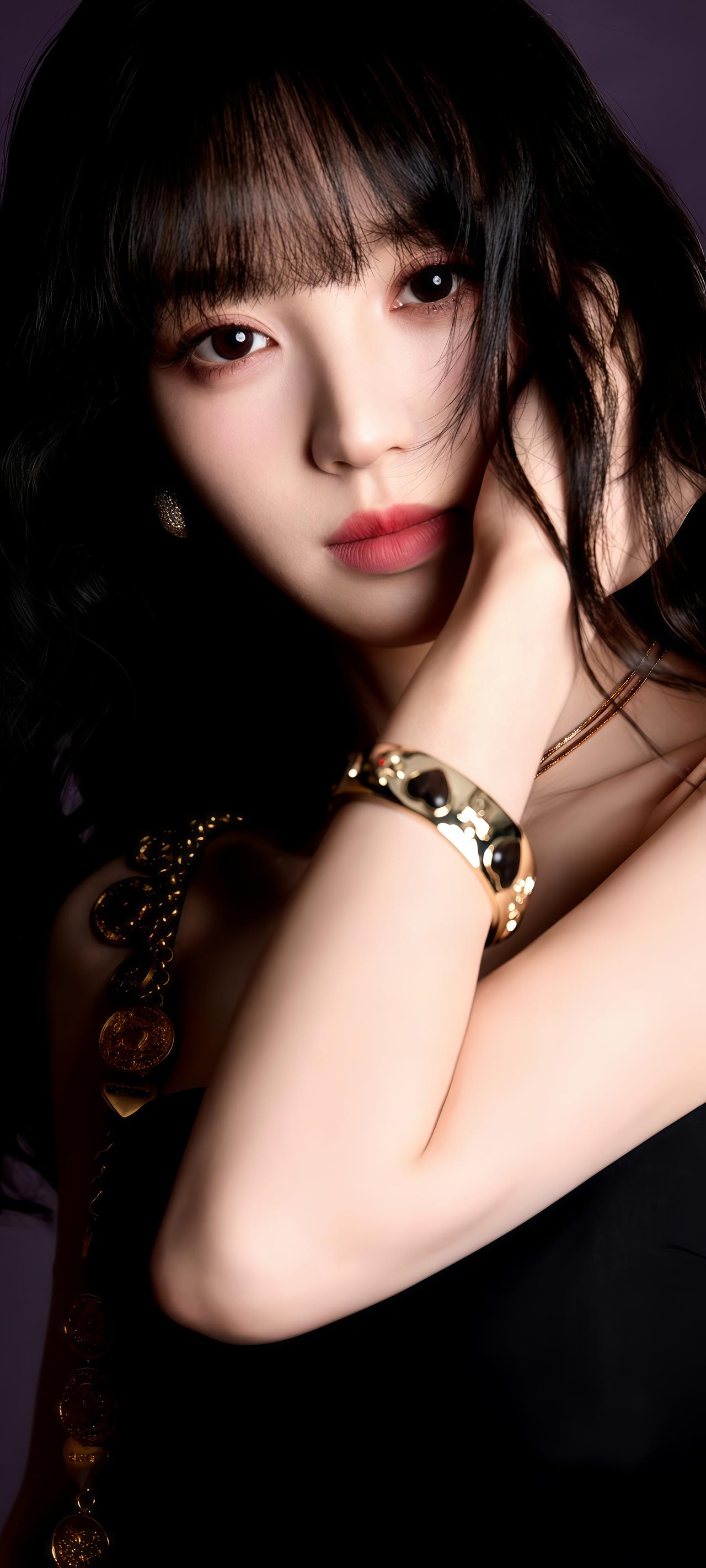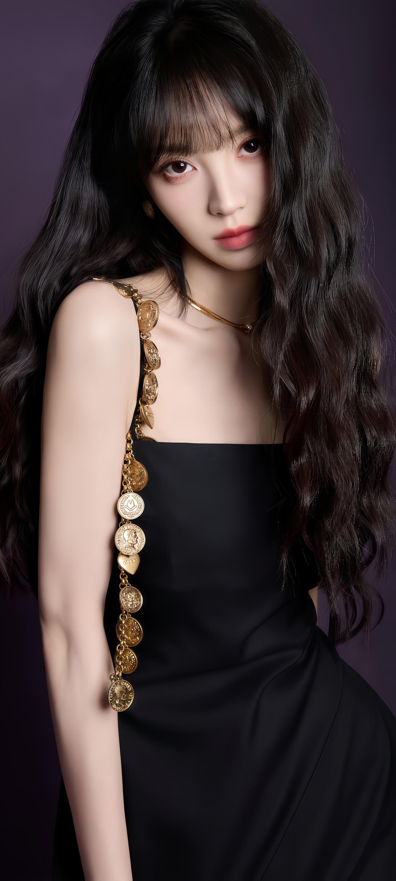 田曦薇,优雅黑裙,自信姿态,紫色背景,时尚大片 明星时尚 田曦薇 颜值天花板 女明星